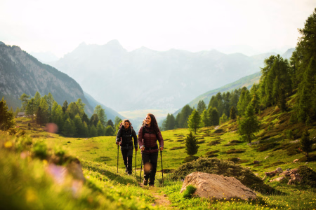 - Randonnées itinérantes ou en étoile à travers les lacs alpins et les forêts de mélèzes