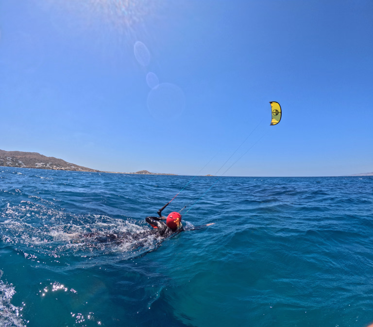 Les Cyclades offrent un cadre de navigation unique au monde, alliant vent soutenu et paysages de carte postale. Grâce au Meltem, vent puissant soufflant en été, l'archipel devient un immense terrain de jeu pour le wingfoil. Chaque île possède ses propres spots, offrant des conditions variées entre eau plate et clapot formé, le tout dans une eau cristalline à la température idéale pour les sports nautiques.