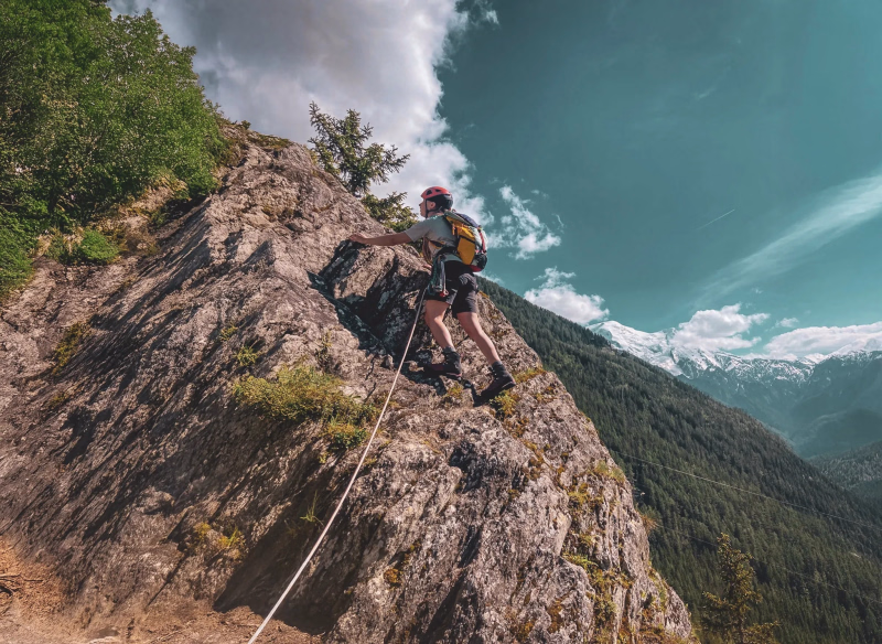 Au programme : grimpe en chaussures d’alpinisme, gestion de l’équilibre, assurage, manipulations de corde et premiers rappels. Cette mise en jambe progressive permet de prendre confiance dans un environnement vertical sécurisé.