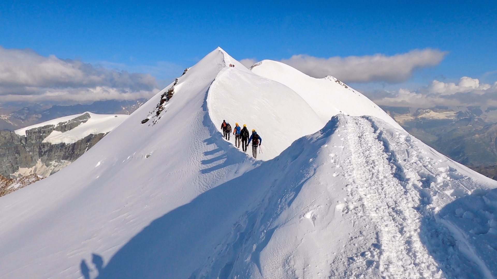Après un bon petit déjeuner, vous commencerez votre ascension sur le glacier du Felik par l'arête de neige qui remonte en direction du nord vers la Punta Perazzi, pour atteindre ensuite le Col Felik. Après cela, la montée au sommet de Punta Felik commence et à partir de là, vous suivrez l'arête de neige qui monte et descend plusieurs fois pour enfin atteindre le sommet du Castor qui est un peu aérien.