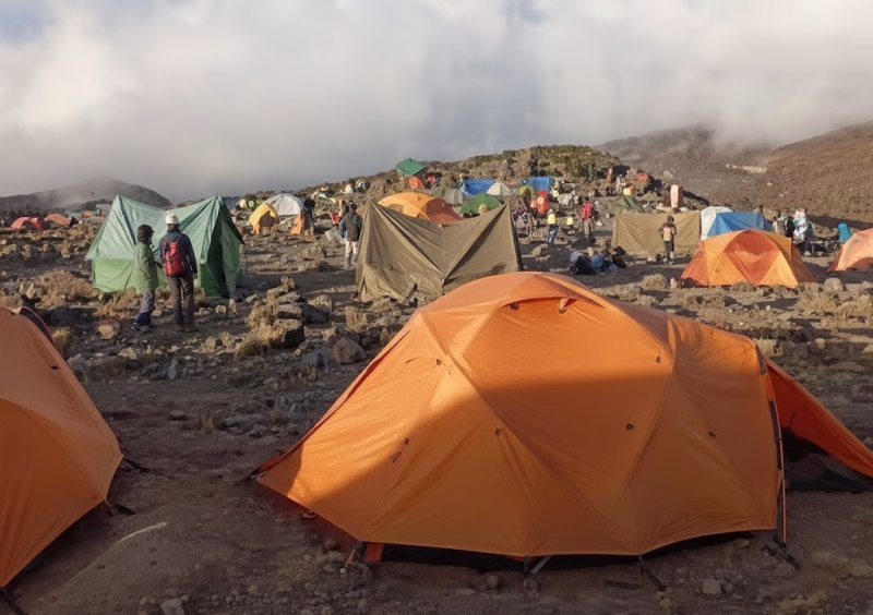 Points forts du camp : Barafu Camp est crucial pour l’acclimatation et la préparation de la montée nocturne au sommet. Le dîner est servi tôt pour permettre un repos suffisant.