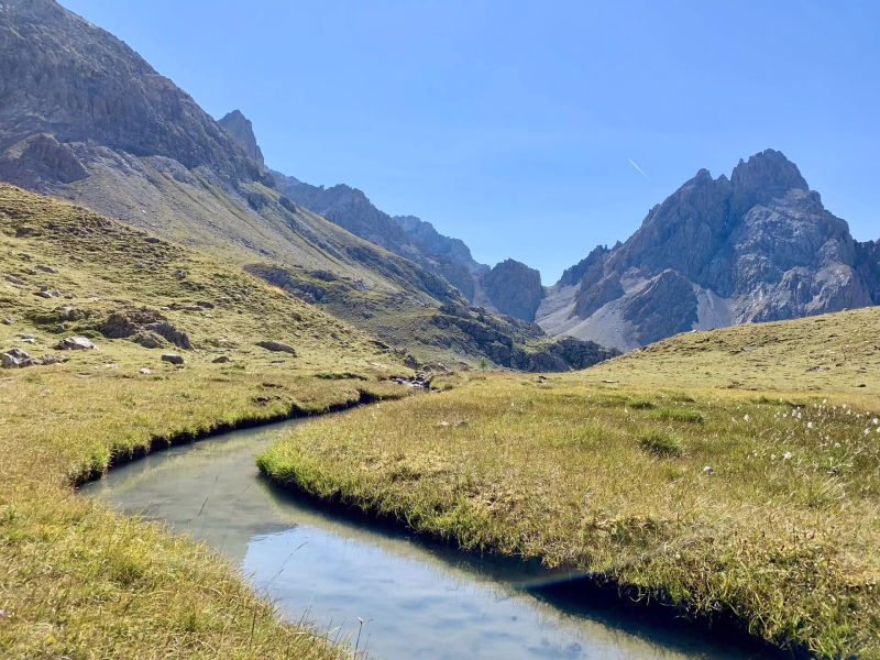 Rendez-vous à 9h30 à la Fouillouse, dernier hameau de la vallée. Une randonnée d’approche nous mène dans un secteur isolé, sans réseau, propice à l’apprentissage. En chemin, on aborde la gestion de l’effort, le rythme et les bases pour progresser sereinement en montagne.