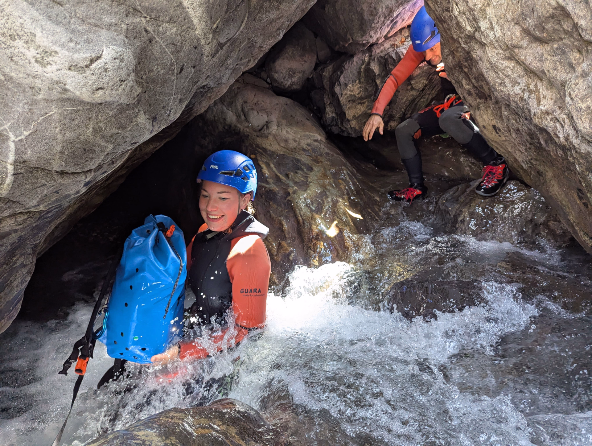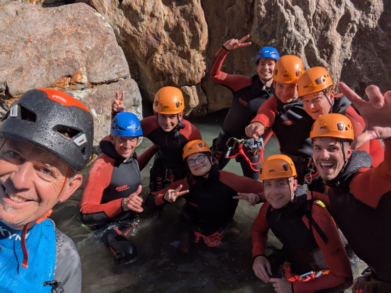 Le canyon de Héas offre un cadre idéal pour une première immersion. Vous progressez dans un torrent de montagne aux eaux cristallines, entre sauts et toboggans naturels pour ceux qui le souhaitent. Les passages techniques, comme les petits rappels, sont accessibles à tous et permettent de se familiariser avec le matériel en toute sérénité. Cette journée est l’occasion parfaite pour prendre confiance et profiter pleinement de ce lieu unique.