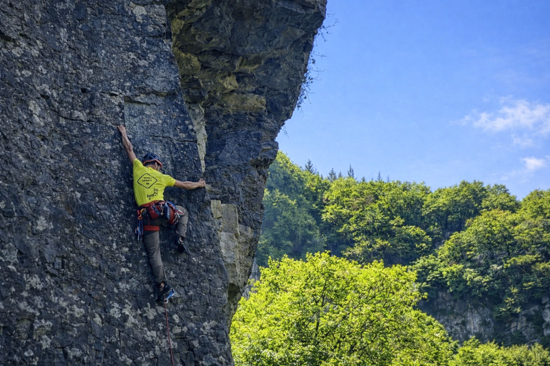 Chaque étape vous conduit vers un site d’escalade différent. À Hières-sur-Amby, les parois sculptées proposent des voies idéales pour découvrir ou progresser. À Vertrieu, les dalles et fissures sollicitent précision et fluidité, dans une ambiance minérale unique. Plus loin, du côté d’Entrelacs, l’escalade se pratique dans un environnement naturel remarquable, au bord du lac du Bourget, avec des itinéraires variés adaptés à tous les niveaux.