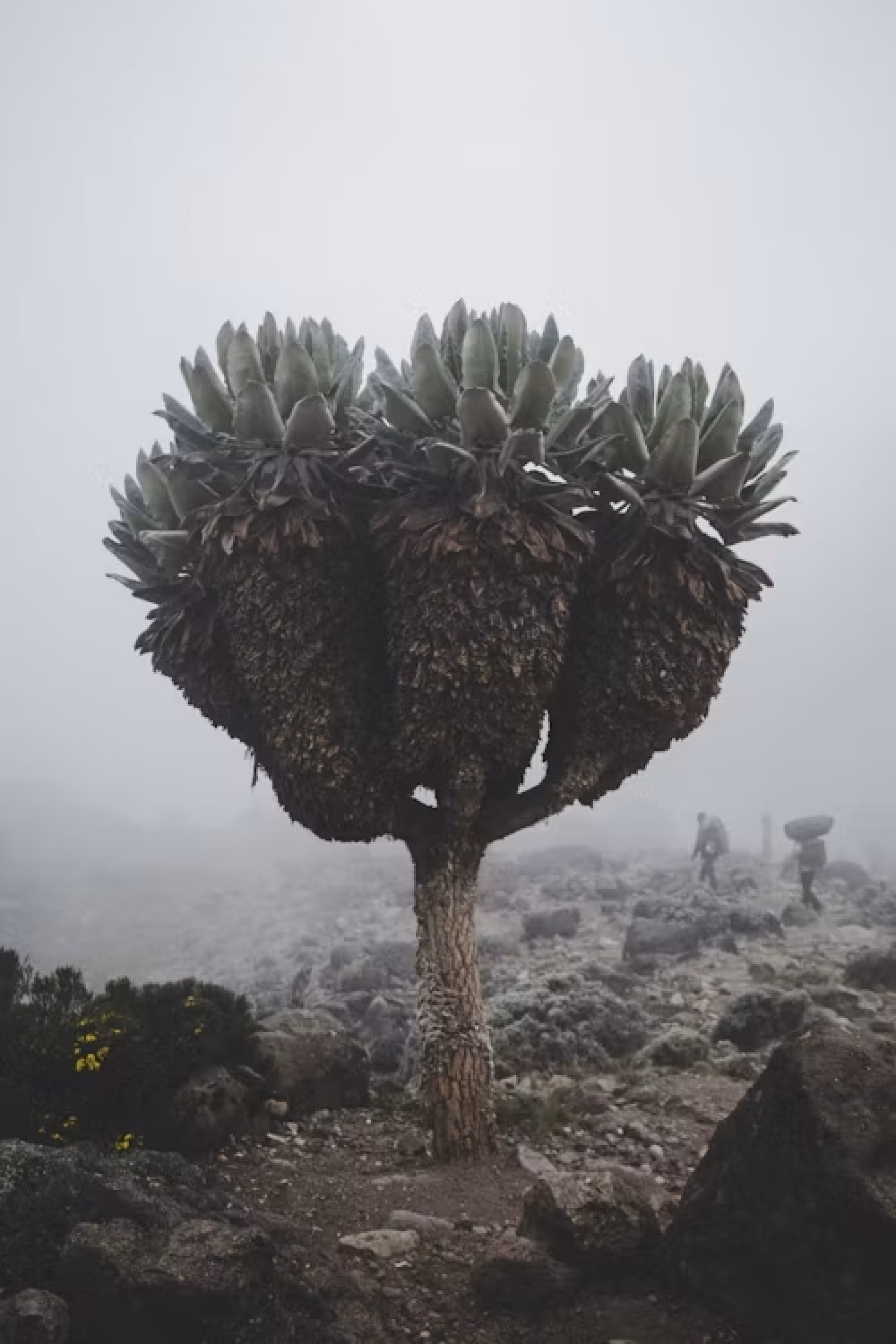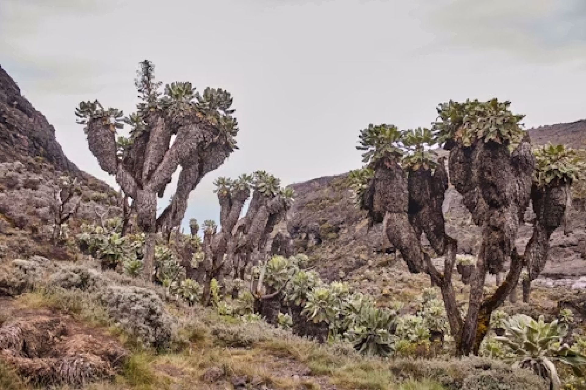 Après un petit-déjeuner copieux au camp Mti Mkubwa, vous commencez votre randonnée en grimpant dans la partie supérieure de la forêt tropicale, où la canopée dense laisse progressivement place à des zones de bruyères et de landes alpines. Le sentier offre une vue panoramique sur les pentes du Kilimandjaro, les vallées profondes et les sommets lointains, idéal pour prendre des photos et admirer le paysage spectaculaire. En chemin, admirez les lobélies géantes, les salicornes géantes et la flore alpine unique, qui créent un décor vraiment magique. Le rythme modéré permet une acclimatation progressive, donnant à votre corps le temps de s'habituer à l'altitude croissante. Vous pourrez également apercevoir des oiseaux exotiques et de petits animaux. Dans l'après-midi, vous atteindrez le camp Shira 2 (3 850 m), où vous pourrez vous détendre, déguster un repas chaud préparé par votre équipe de trekking et profiter d'une vue imprenable, tout en vous préparant pour la prochaine étape de votre aventure sur le Kilimandjaro.