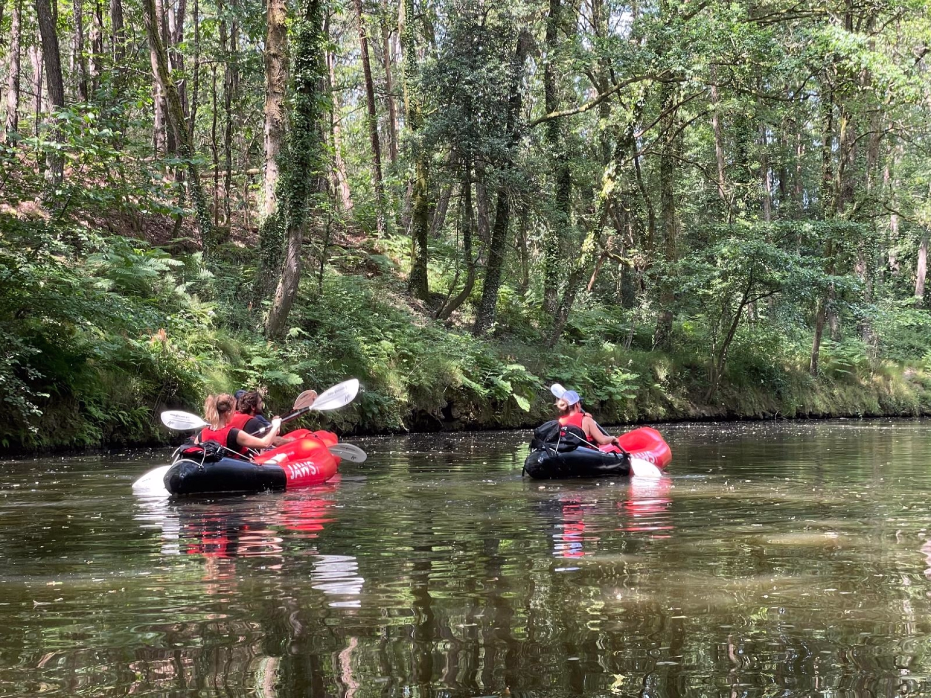 Packraft dans le sac, vous quittez La Gacilly à pied. Après 4,5 km de marche (environ 1h30) sur des sentiers forestiers, vous atteignez les rives de l’Aff, paisible et sauvage. C’est là que vous mettez à l’eau pour une navigation douce jusqu’au port de Glénac, parfait pour une pause déjeuner.