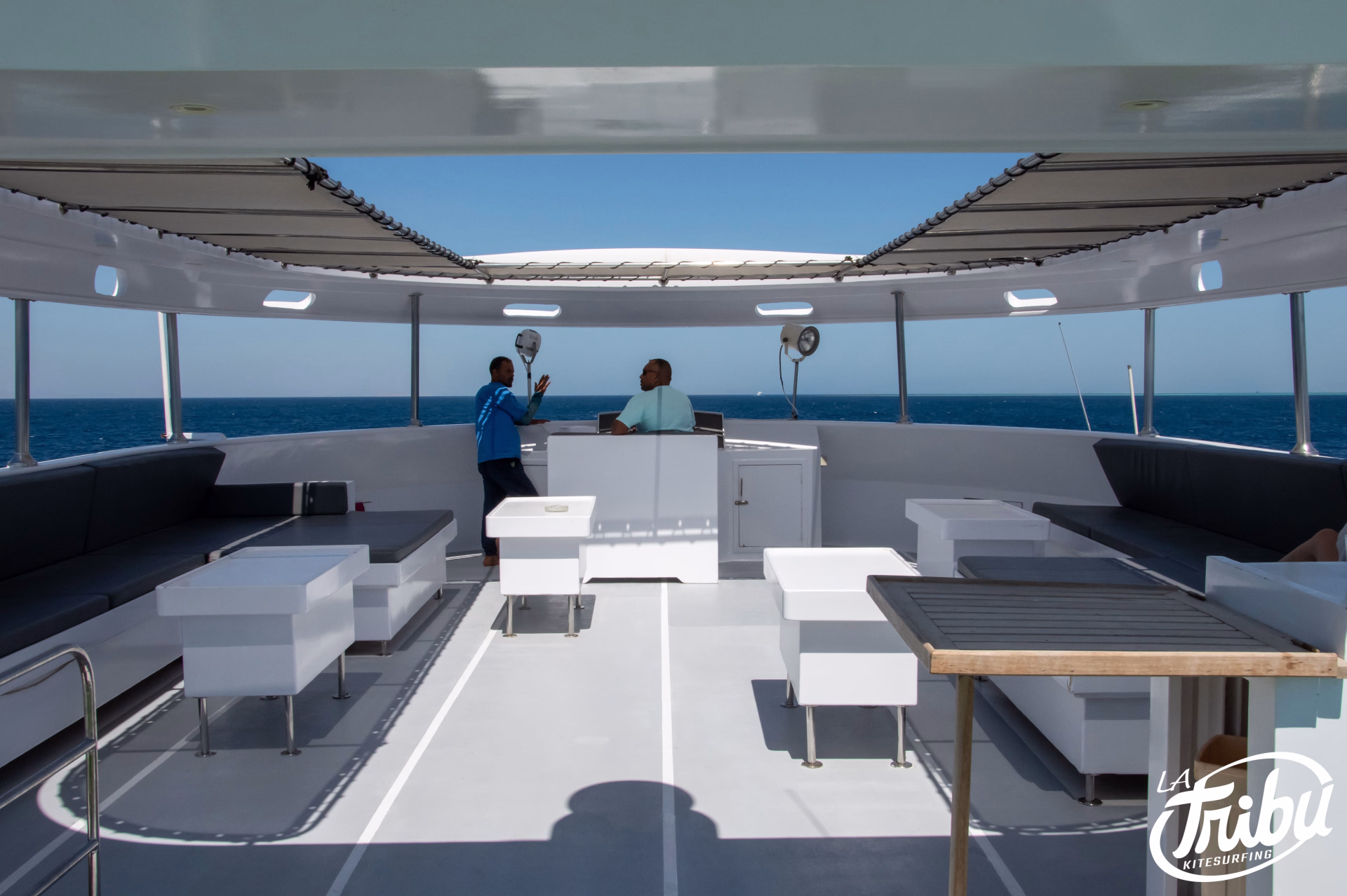 À bord, tout est pensé pour votre confort : notre bateau (goélette ou yacht selon le nombre de participants et disponibilités) vous offre un cadre spacieux et élégant, idéal pour se relaxer entre deux sessions. L’équipage attentionné est à vos petits soins, sur l’eau comme à terre.