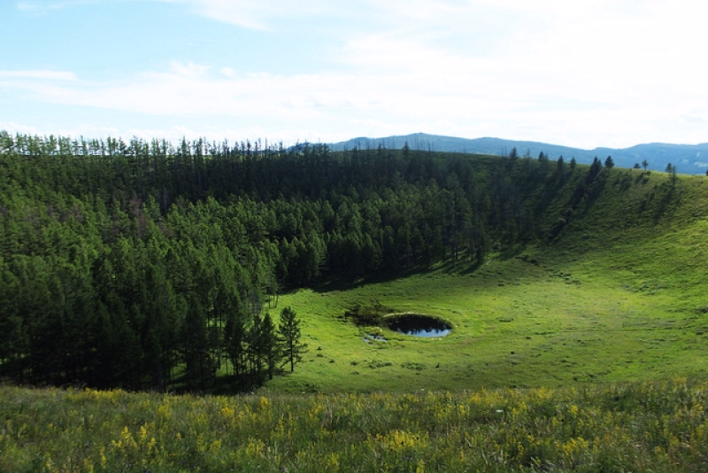 Dans la matinée, randonnée sur les hauteurs d’Uran Uul afin de profiter d’un vaste panorama sur la région volcanique. Le sentier serpente à travers les sous-bois de mélèzes de Sibérie avant de rejoindre le cratère. En chemin, vous observez une flore variée ainsi qu’une faune discrète composée d’oiseaux et d’insectes. Au fond du cratère, un petit lac entouré d’une végétation dense compose un décor naturel paisible et préservé.
