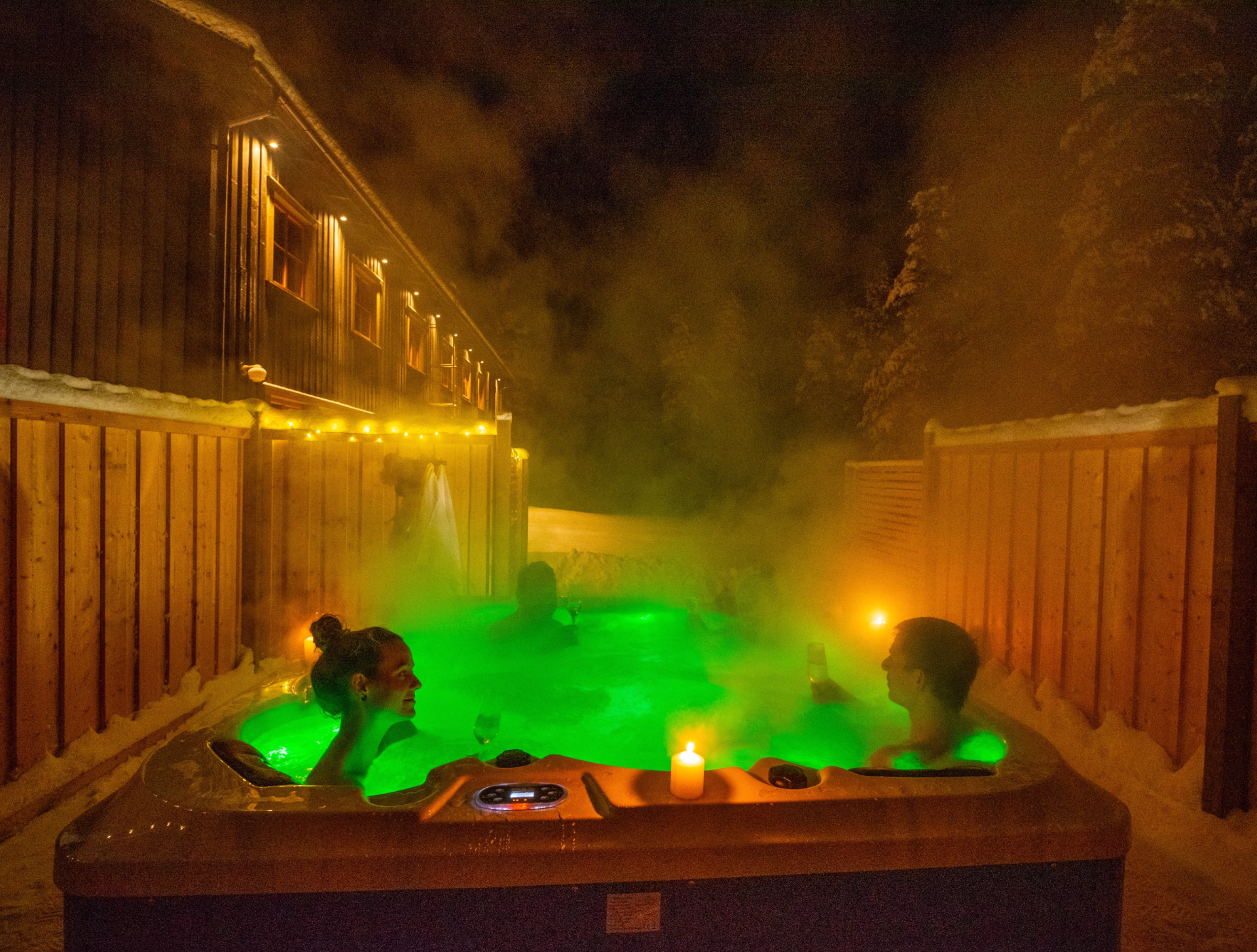 Seul le chenil se situe dans un autre bâtiment. En plus de la réception, le lodge dispose d'un agréable restaurant, d'un salon et du Woodland Bar. Il y a une petite boutique de souvenirs et à côté, dans le même couloir, vous trouverez les saunas. Le sauna public est accessible gratuitement à heures fixes. Vous pourrez réserver l'autre sauna moyennant supplément. Il est également possible de louer les deux jacuzzis extérieurs avec ou sans sauna. L'établissement dispose par ailleurs d'un vestiaire, vous n'aurez donc pas besoin d'emporter vos vêtements grand-froid dans votre chambre. Chaque chambre dispose d'un espace de rangement, afin que vous puissiez y sécher tous vos vêtements après une journée pleine d'aventure.