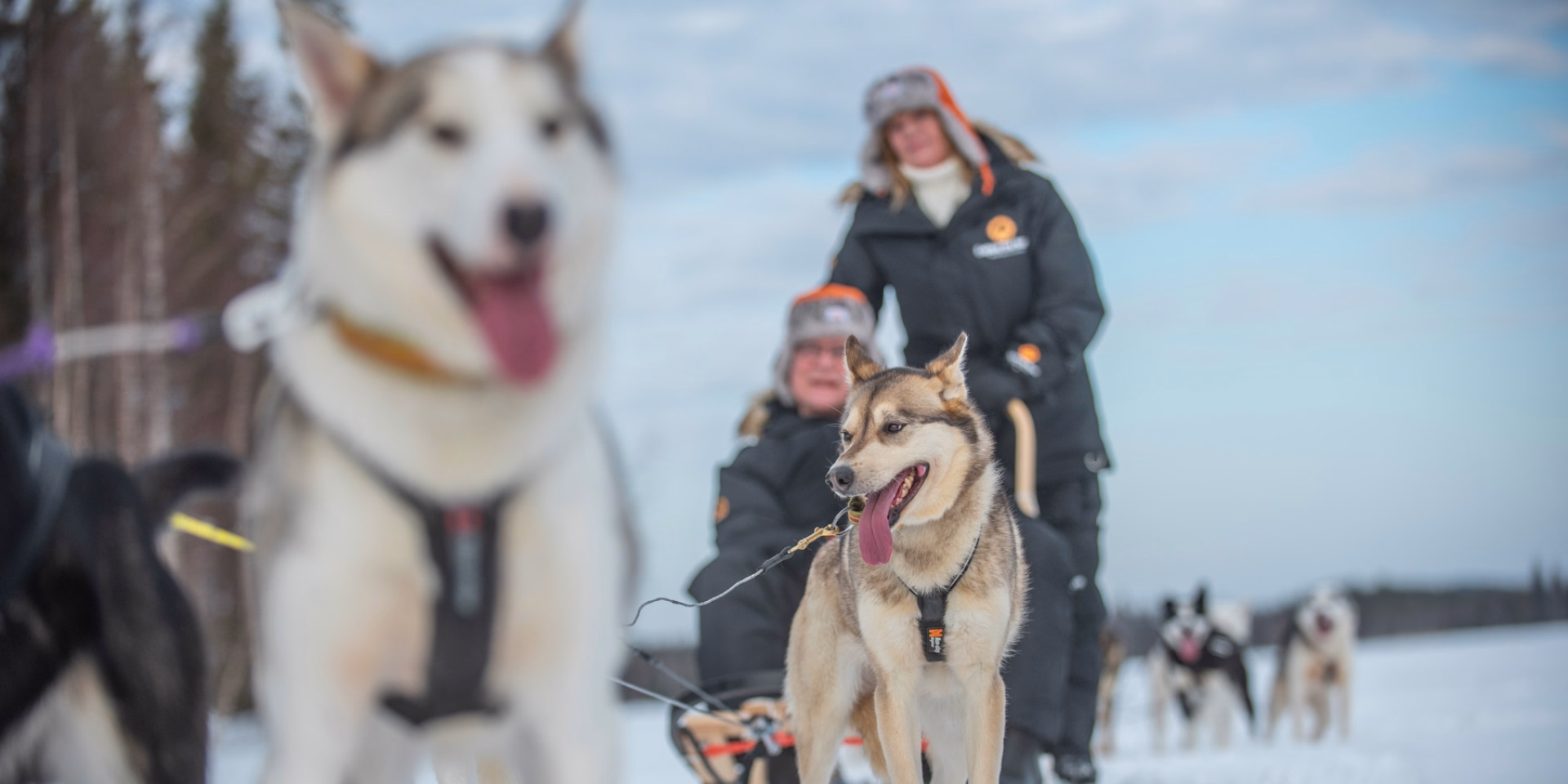 - Journée en traîneau à chiens, déjeuner inclus (5h) : 2380SEK (conduite partagée) ou 3480SEK (conduite individuelle)