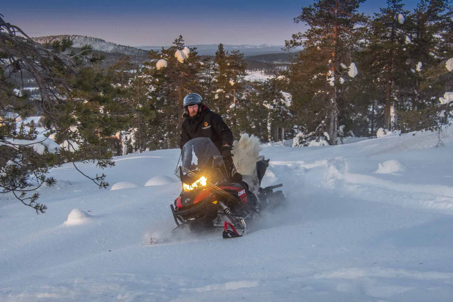 Prêt pour une escapade d’une demi-journée en motoneige (2 personnes par engin) ? C'est le moyen de transport lapon par excellence. Après les explications nécessaires sur la conduite de ces engins, vous serez prêt à partir avec le guide. Vous conduirez sur des lacs et des rivières gelés, traverserez des paysages enchanteurs à travers la féerique taïga. Profitez de la vitesse et des vues à couper le souffle. Montée d’adrénaline assurée !