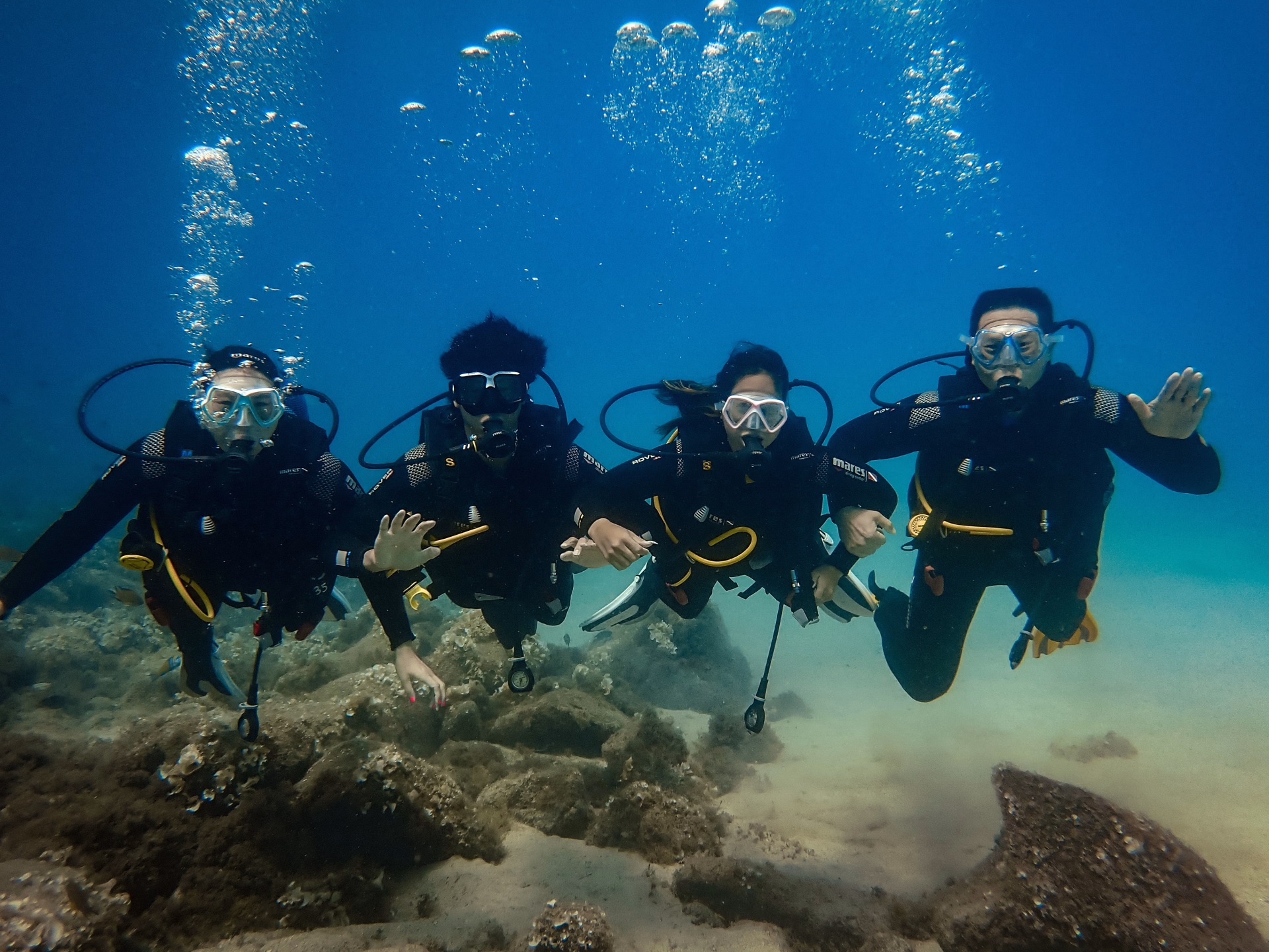 - Les deux premiers jours (2 sessions en piscine et 2 plongées en mer + certifications) 320€ / personne
