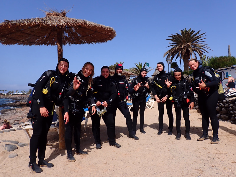 Nous aimons aussi transmettre notre respect pour l’océan et les paysages volcaniques de Playa Blanca, en encourageant une plongée responsable et curieuse. Et une fois certifié, vous faites un peu partie de la famille : nous sommes toujours là pour conseiller, accompagner et continuer l’aventure ensemble.