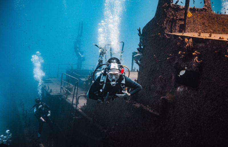 Moniteur de plongée enseignant, guide et assure la sécurité des plongeurs en exploration sous-marine.