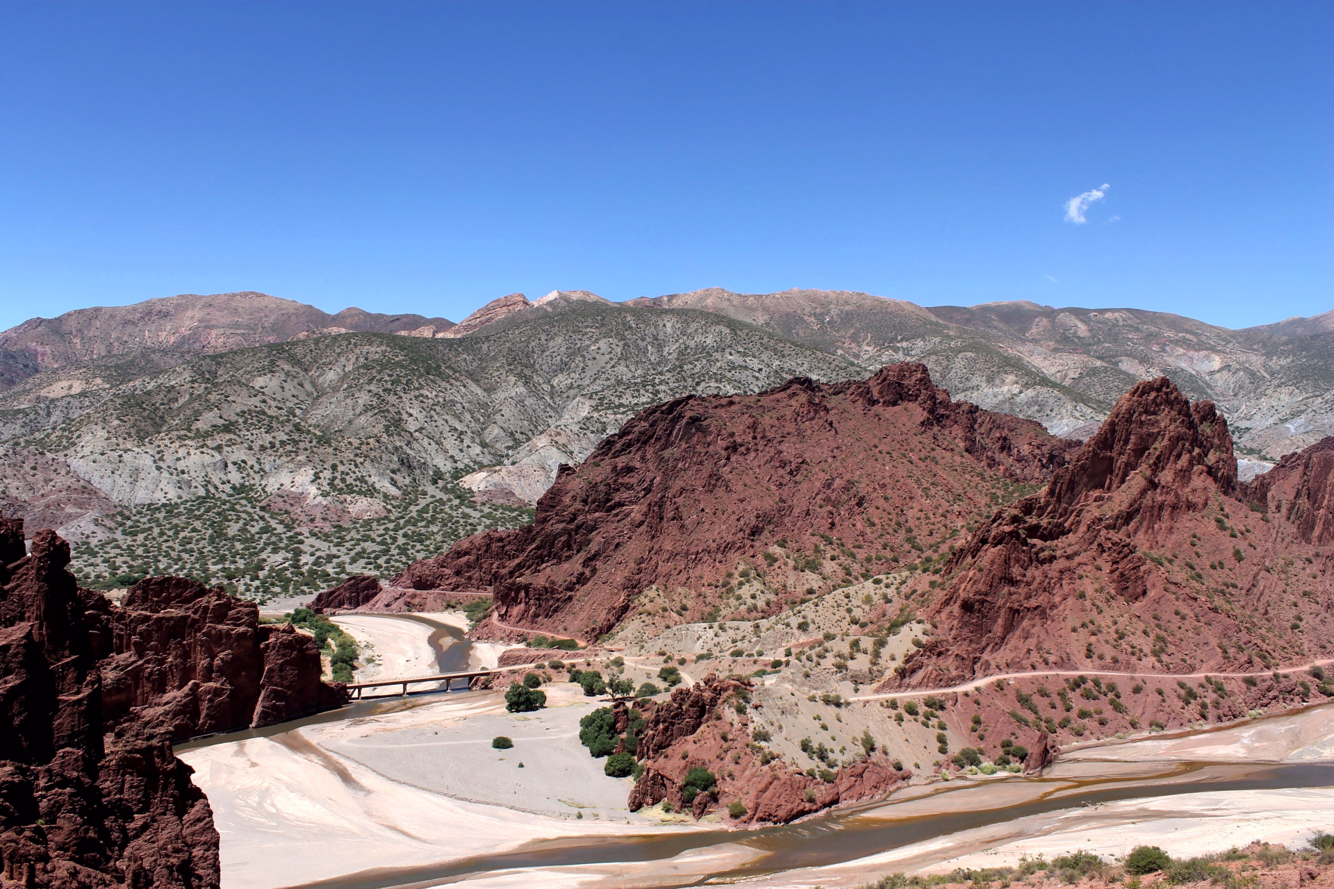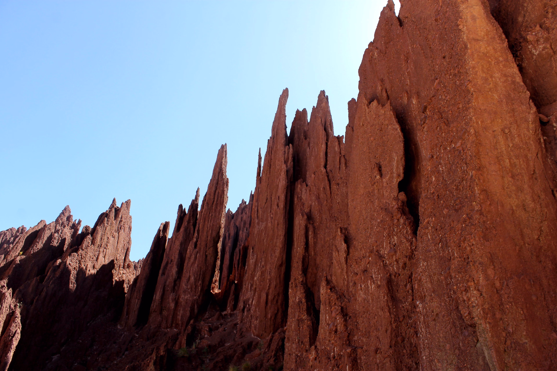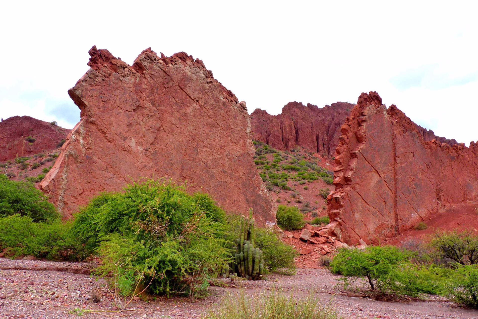 Nous poursuivons notre route en traversant la Quebrada Seca, dont les parois rocheuses multicolores s’élèvent comme un arc-en-ciel minéral, un véritable festival de rouge, d’ocre et de gris, éclairé par le soleil de l’après-midi.