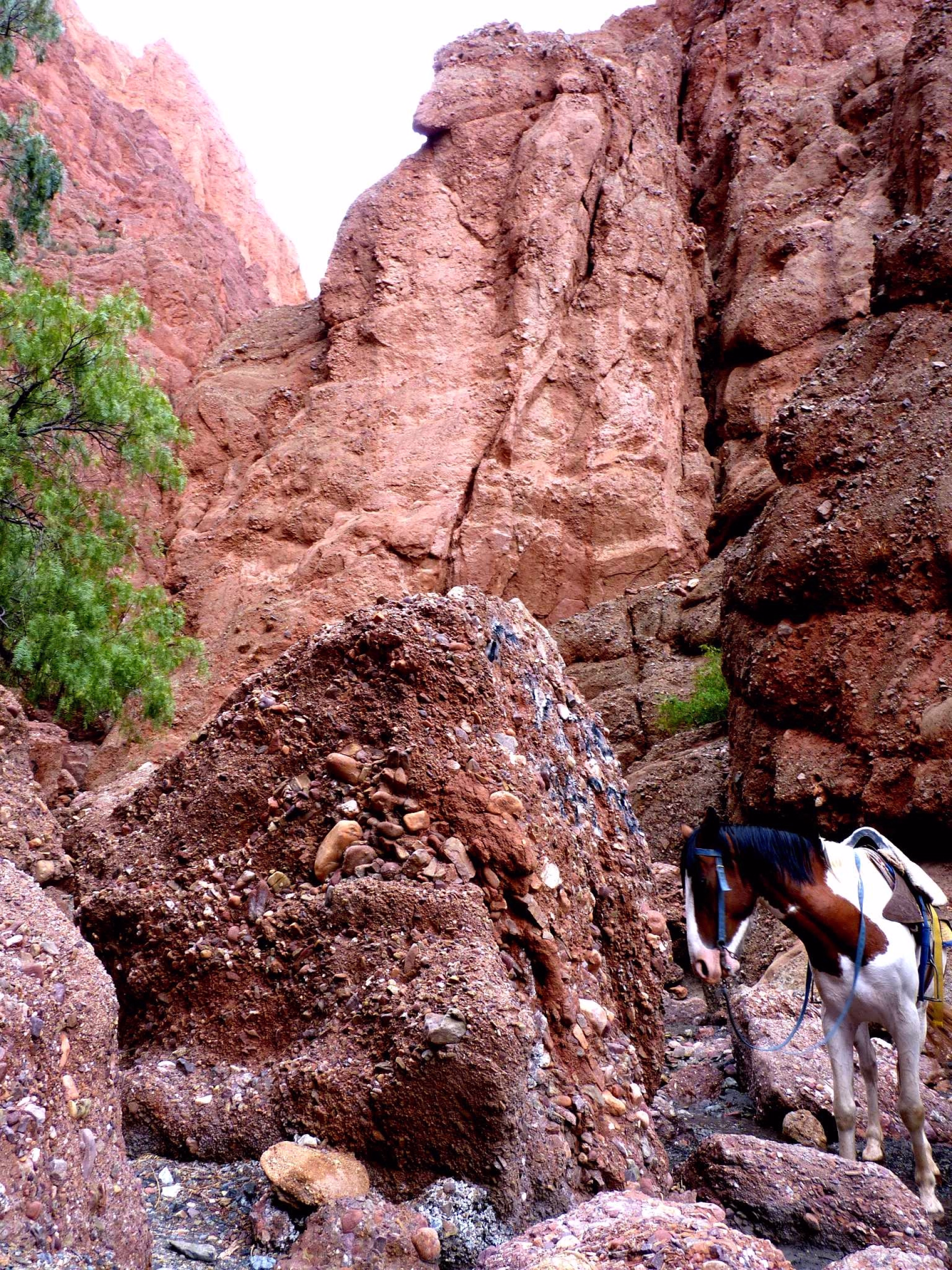 De Bolívar, nous prenons la route vers le Cañón del Duende. Le canyon s’ouvre devant nous, mystérieux et imposant, et à sa sortie, un spectacle unique nous attend: une vallée peuplée de cactus géants, ponctuée de ruines historiques. Ces vestiges silencieux étaient autrefois les maisons des anciens Chichas, fiers habitants de la culture pré-inca, et marcher ici à cheval donne l’impression de voyager dans le temps.