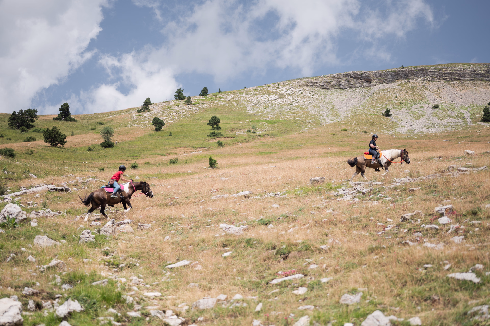 Au fil des heures, on galope à travers les pâturages, on traverse des forêts de mélèzes centenaires, et l’on partage avec sa monture des instants gourmands sur des cols avec une vue à couper le souffle . L’itinéraire, aussi varié que technique, s’adresse aux cavaliers ayant un niveau galop 2 minimum, prêts à s’engager dans une randonnée où l’effort physique fait partie du voyage.