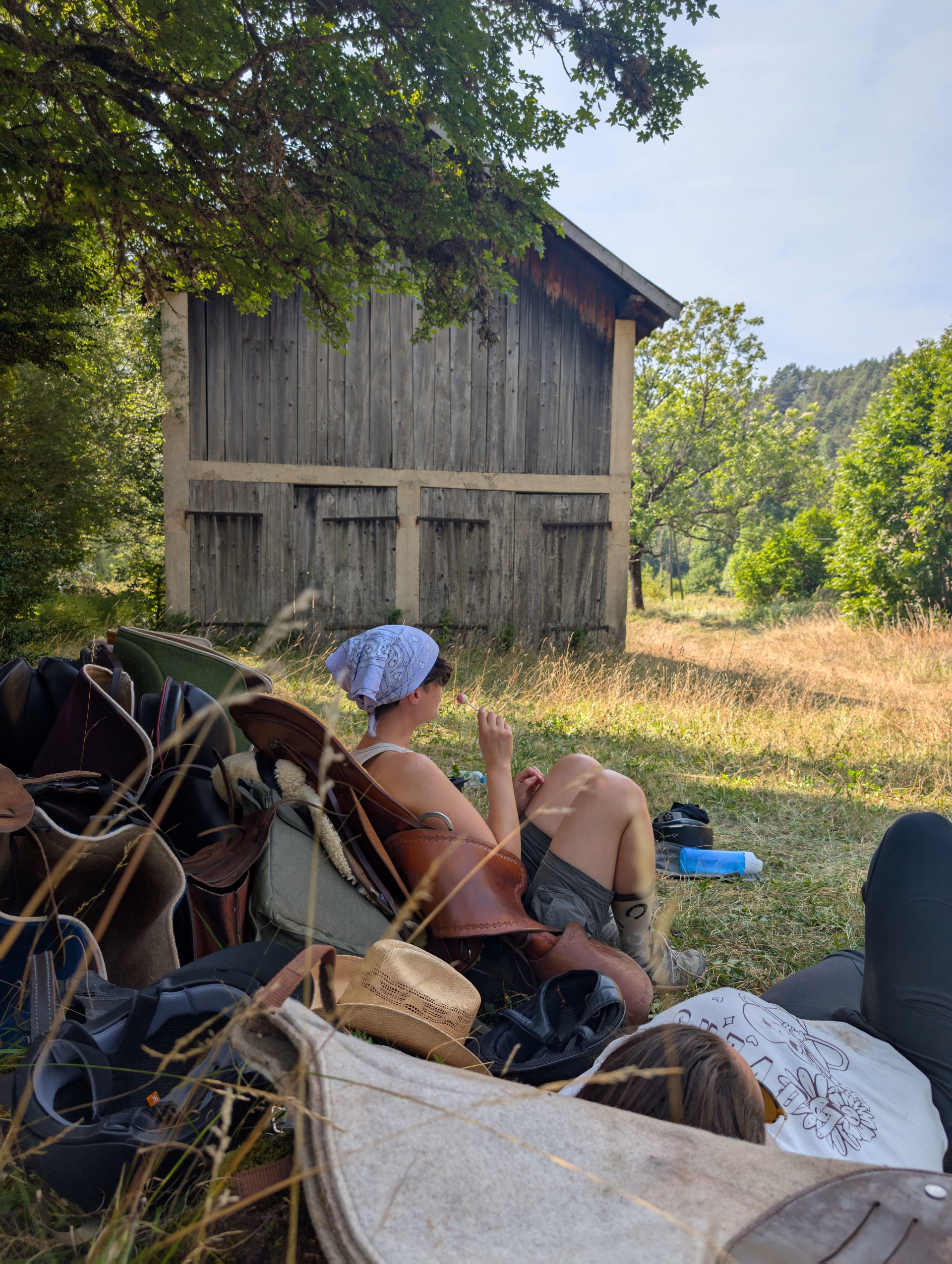 Le petit-déjeuner est servi entre 7h et 7h30, préparé avec soin par vos hôtes. Après une première journée de prise en main, vous préparez désormais votre cheval en toute autonomie, sous le regard attentif de Lisa, toujours disponible si besoin.