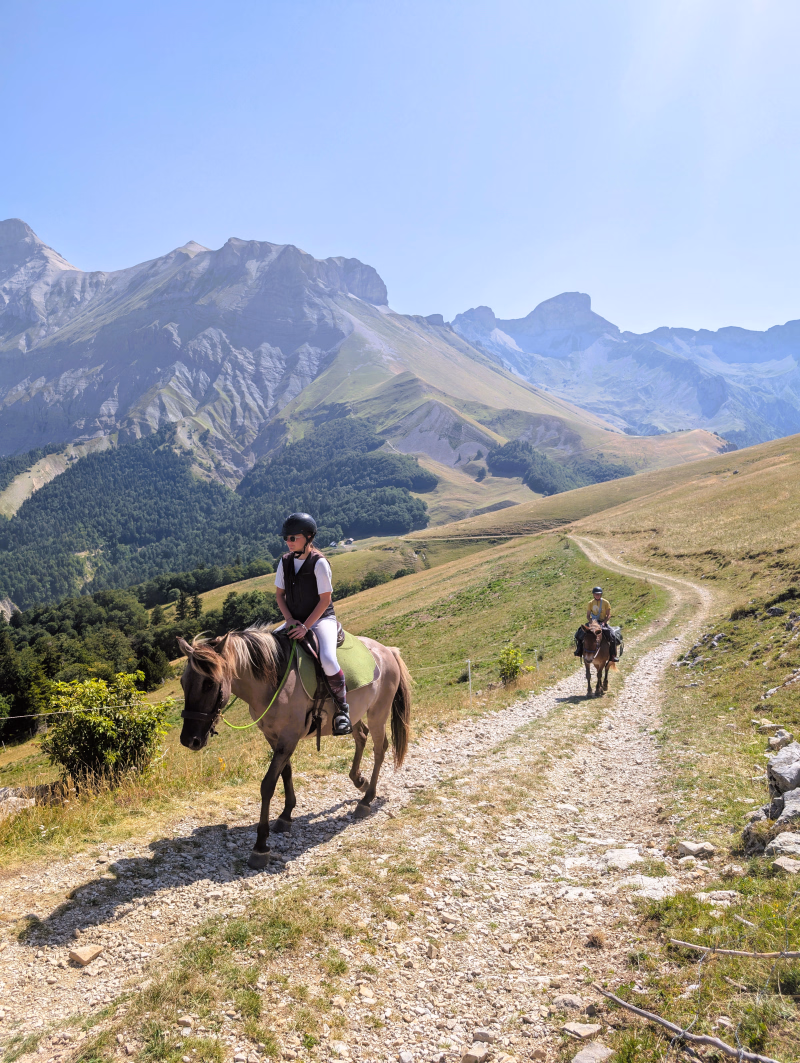 Cap sur les crêtes de Lus, un itinéraire à cheval aux panoramas saisissants. Vous progressez à cheval sur la partie sommitale, avant de descendre à pied deux portions plus techniques d’environ 30 minutes chacune.