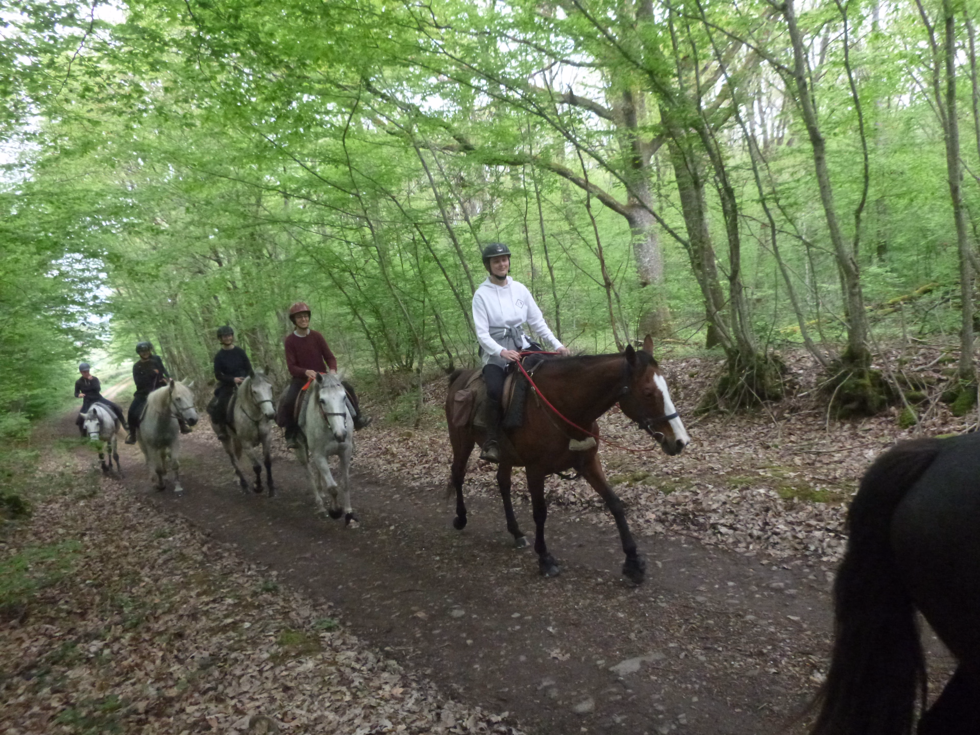 1. sortie nocturne au retour, 3 heures de cheval, accompagné d'un encas avant de repartir à cheval, nuitée en gite de groupe et petit déjeuner