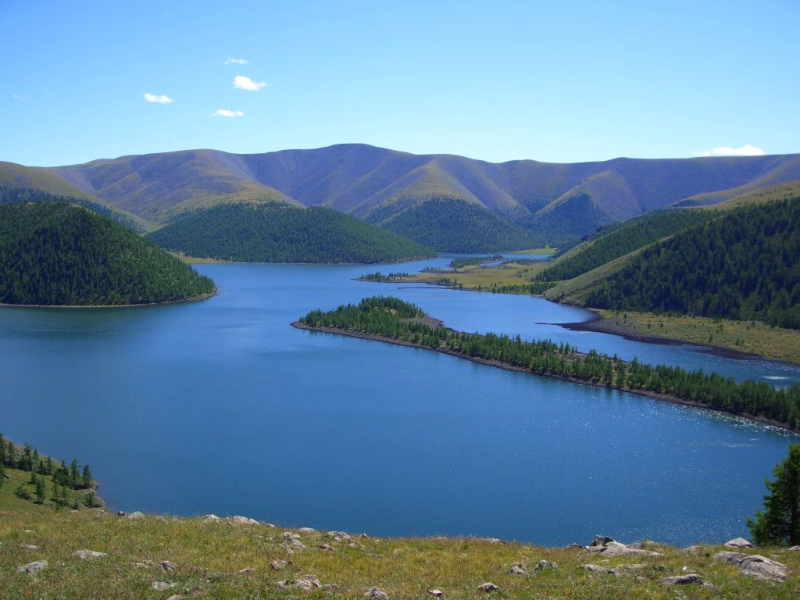 Notre itinéraire nous mène d’abord jusqu’au lac Bugat, avant de poursuivre à cheval à travers plaines et forêts en direction du lac Shireet. Avec ses 10 km², il est le plus vaste lac du parc, mais aussi le plus élevé, perché à 2 366 mètres d’altitude. Entouré de forêts et reflétant le bleu profond de Tenger, le ciel éternel, ce lac sauvage offre un paysage d’une grande sérénité et une atmosphère propice à la contemplation.