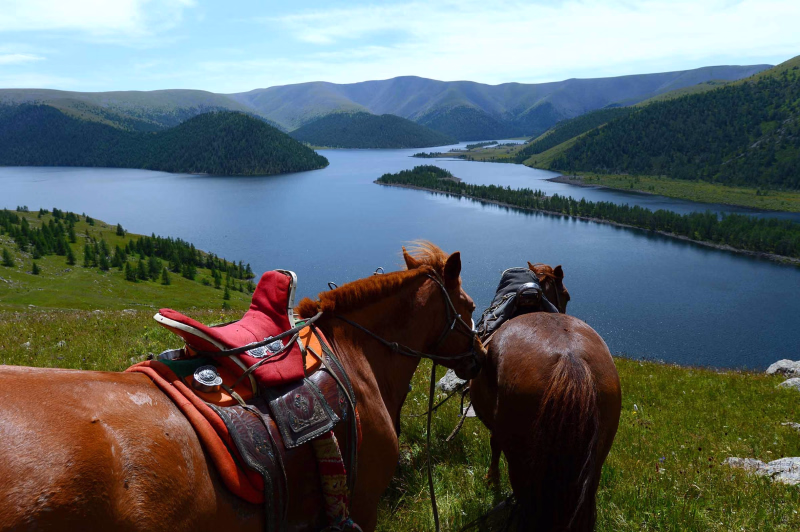Aujourd’hui, nous chevauchons à la découverte des lacs de ce Parc national, l’un des plus beaux de Mongolie. Le paysage sauvage, forêt de pins et de mélèzes, rosiers sauvages et fleurs des champs, genévriers, edelweiss.