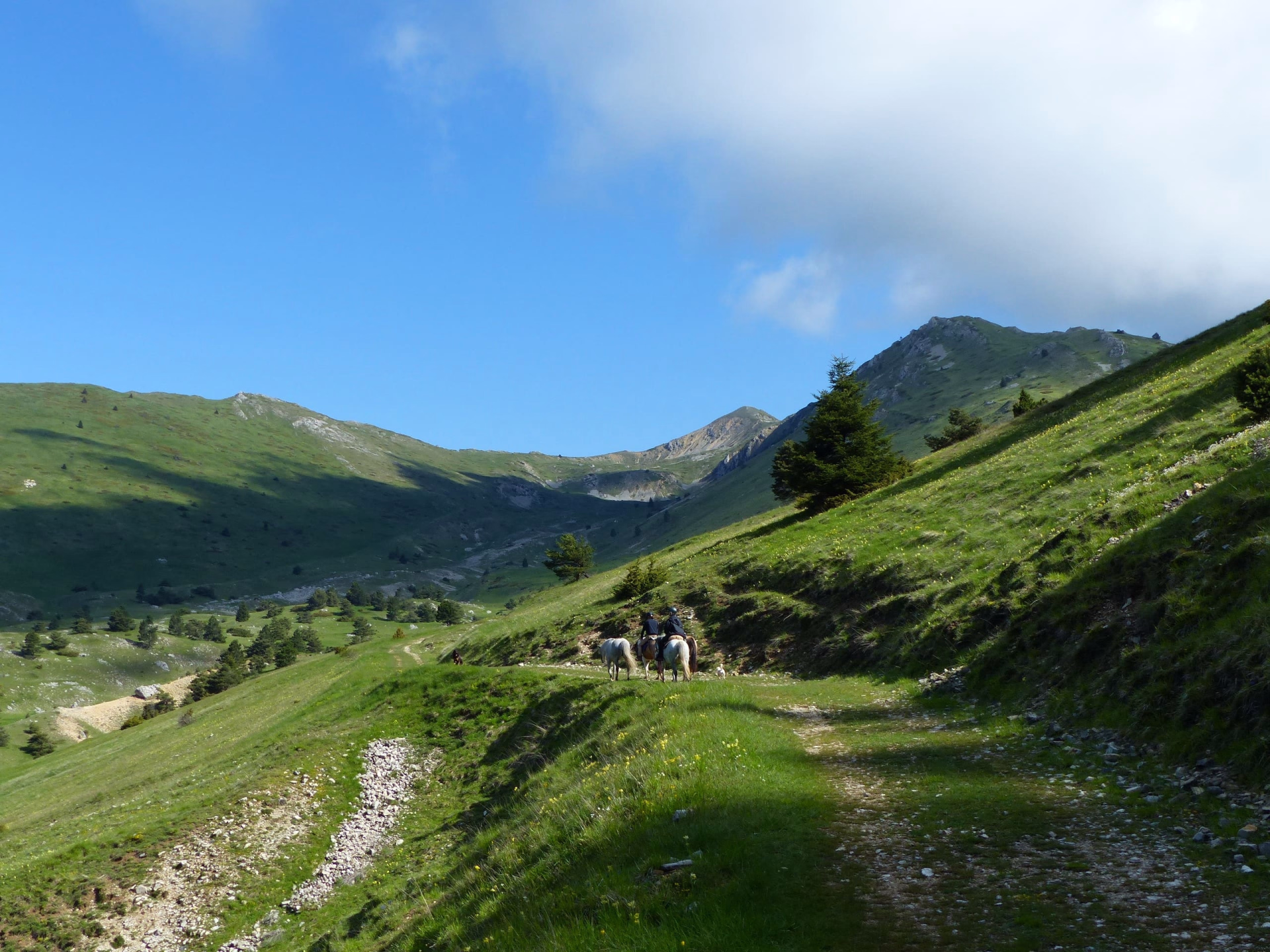 Vous partez à cheval sur des sentiers boisés, franchissez des cols et traversez des alpages, avec quelques allures si le terrain le permet. Les chevaux pourront se rafraîchir dans les ruisseaux en chemin.