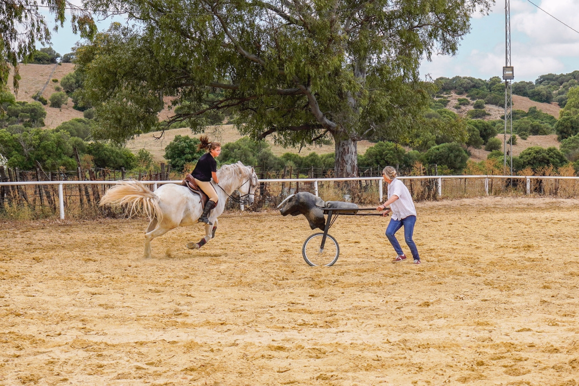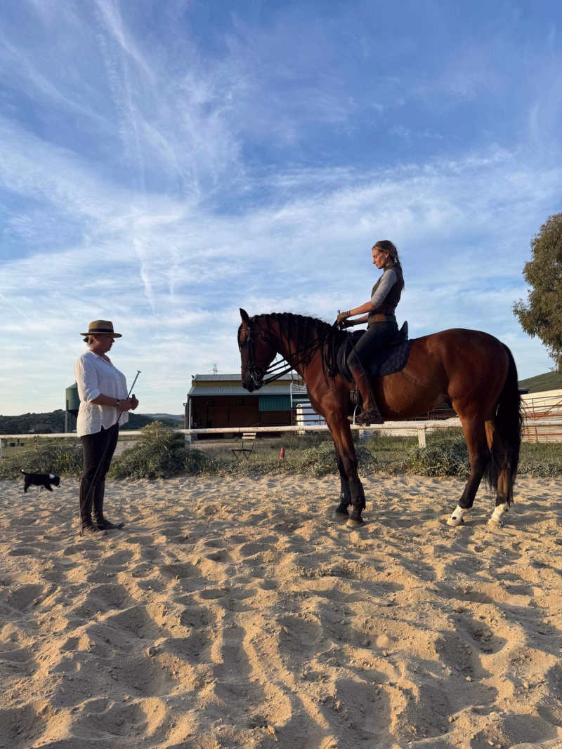 Le déjeuner est servi sur place 🍽️, suivi d’un moment de repos bienvenu lors de la sieste andalouse 😌. L’après-midi, une deuxième session de dressage permet de renforcer les acquis du matin ou d’explorer de nouveaux axes de travail.