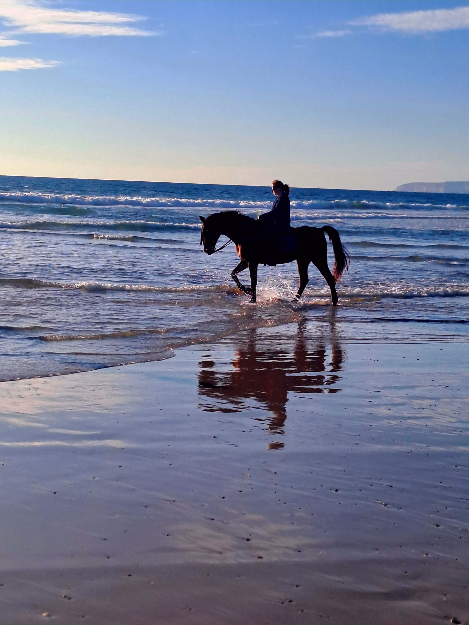Si vous le souhaitez, le troisième jour, il est possible de remplacer la séance d’équitation à la finca par une balade à cheval sur la plage 🐎🌊, située à environ 50 minutes. Cette grande plage sauvage de l’Atlantique, avec vue sur les côtes marocaines, offre un moment inoubliable en pleine nature, entre galops libres et paysages spectaculaires.