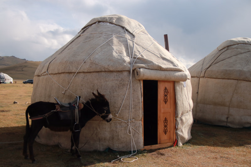 Le programme prévoit plusieurs jours de randonnée équestre, ponctués de haltes dans des campements nomades, permettant une acclimatation progressive et une immersion authentique. Vous admirez des panoramas grandioses : montagnes aux sommets enneigés, steppes infinies et le bleu intense du lac Son-Kul. Les nuits en yourte offrent une expérience unique, entre convivialité et simplicité, dans un cadre naturel préservé.