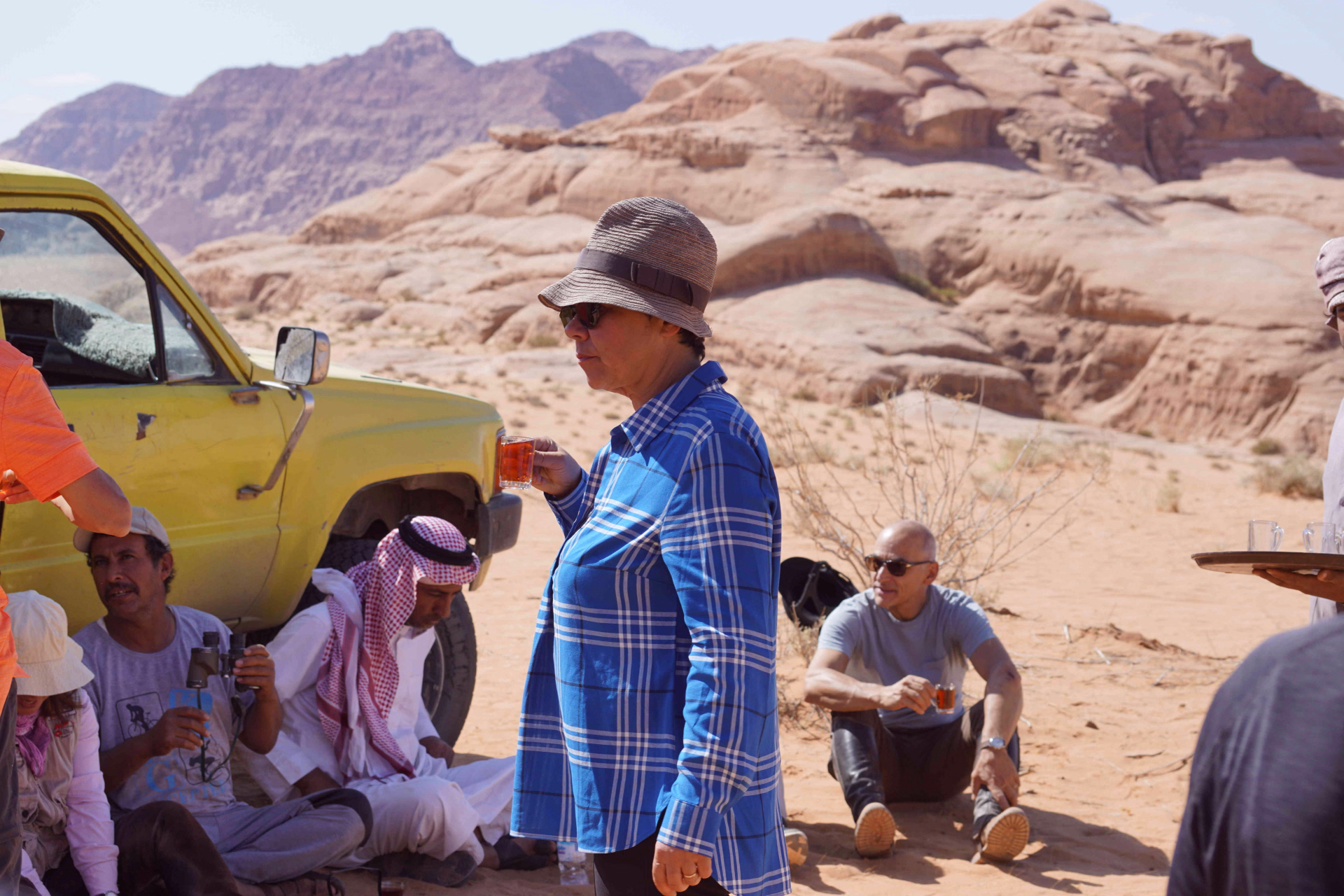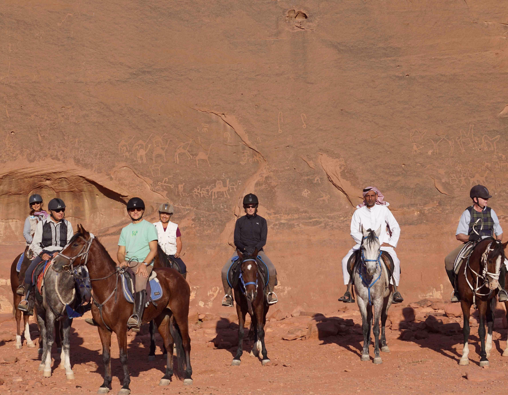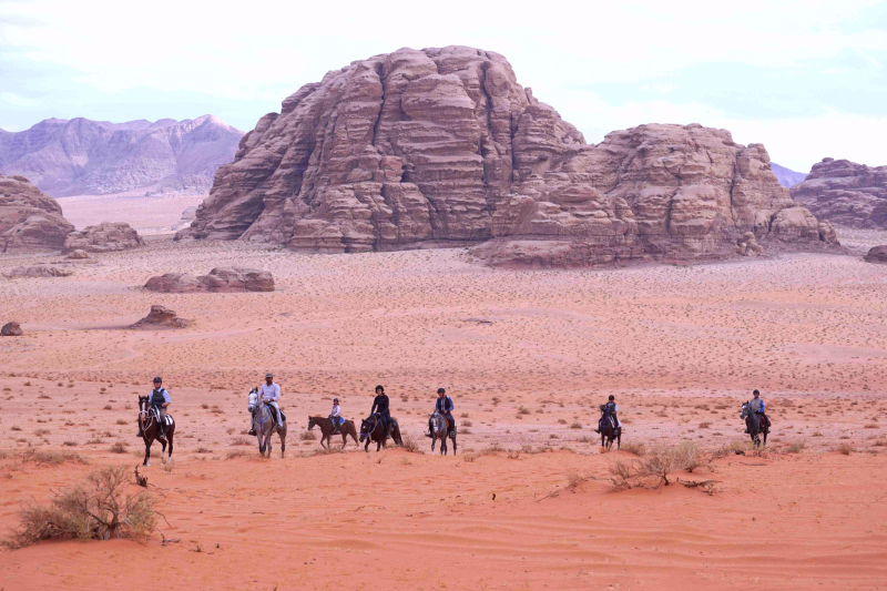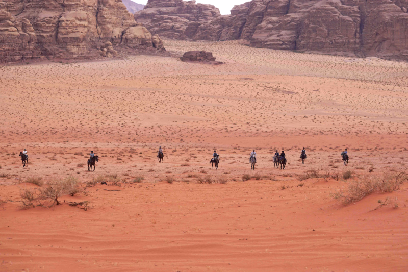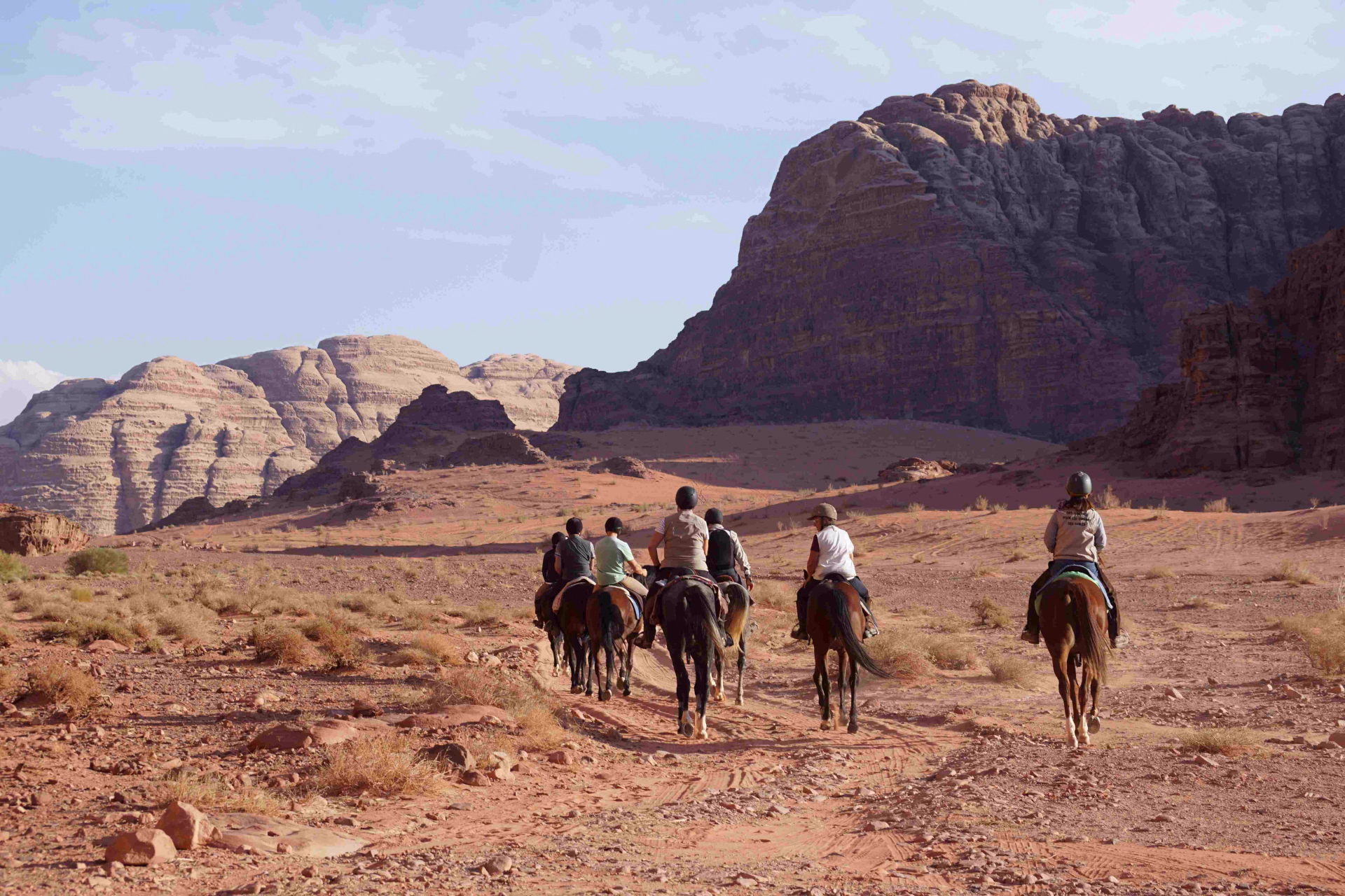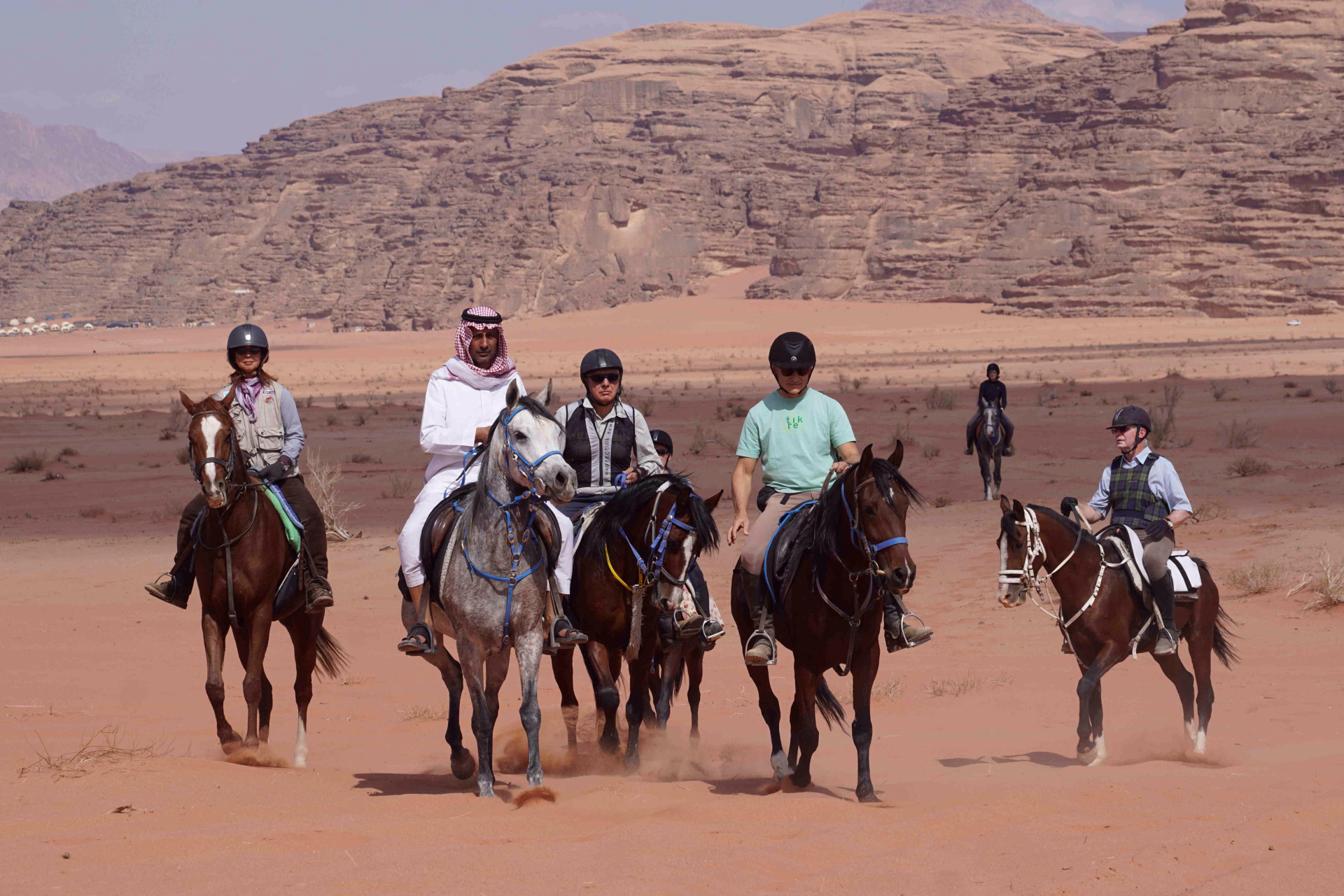 L'équipe est composée d'un guide jordanien anglophone (sauf si le groupe est composé de 8 personnes et plus le guide sera francophone)., d'un cuisinier et d'un chauffeur pour le transport des bagages en pick-up. Le guide n'est pas un conférencier mais un accompagnateur de randonnée équestre , qui connait bien la culture, l'histoire et les différents sites culturels et historiques de son pays.