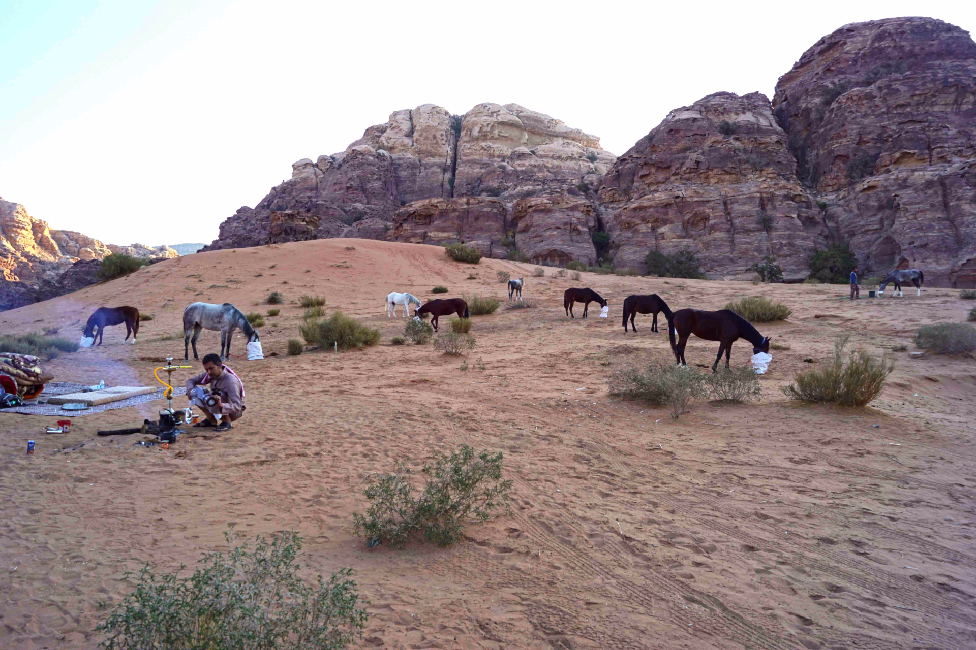 Avec nous, vous monterez de vrais chevaux arabes. Toutes les juments sont d'origines diverses : Jordanienne, Syrienne, et Irakienne. Tous nos chevaux sont généreux et animés, tous agréables à monter en dépit de (ou peut-être en effet en raison de !) leur forte constitution. La vigueur et la joie des chevaux arabes sont bien renommées – ils aiment galoper. A noter que ceux-ci ne sont pas des chevaux d'école, mais des chevaux instruits par des nomades. Nos chevaux sont entraînés par les Bédouins pour résister aux dures conditions de la vie bédouine, et instruits selon les critères, la culture et les coutumes Bédouines. Leur lignée de famille leur assure les capacités essentielles nécessaires à la vie de désert. Nos chevaux sont constamment formés, participant aux courses et s’adaptant parfaitement à la mentalité du cheval de désert - une mentalité de désert que nous espérons partager avec vous. Les chevaux ont longtemps joué un rôle essentiel et honorable dans la vie et les temps de notre société et continuent à faire ainsi à ce jour.