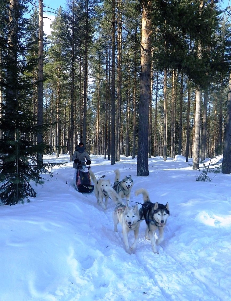 Après votre petit-déjeuner, vous prenez la direction de Dragnäs pour une immersion au cœur du chenil local. Vos hôtes vous transmettent les consignes de sécurité et les techniques de conduite avant de vous confier votre propre attelage de chiens de traîneau. Vous partagez cette expérience avec un autre participant, vous permettant d'alterner entre le pilotage et la contemplation des paysages, confortablement installé dans le traîneau. Votre périple se poursuit par une rencontre avec Börje, un éleveur de rennes. Autour d'un feu de camp, vous partagez un déjeuner chaud tout en découvrant l'histoire et les coutumes ancestrales du peuple Sami. L'après-midi est consacré à l'observation des troupeaux de rennes, une occasion privilégiée pour approcher ces animaux emblématiques du Grand Nord. Vous regagnez ensuite le camp pour le dîner et la nuit.