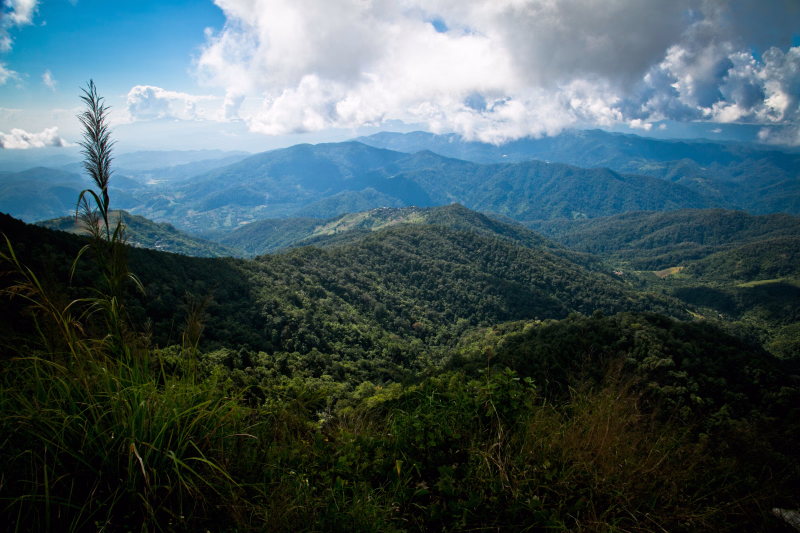 En traversant un petit village Lahu, vous apercevez au loin le Doi Pha Sam Liam, objectif de la journée. L’ascension débute pour près de 700m de dénivelé positif jusqu’au sommet à 1 650m. La montée, soutenue, alterne forêt tropicale et zones de pins, en suivant une crête marquée avant les derniers mètres plus raides.