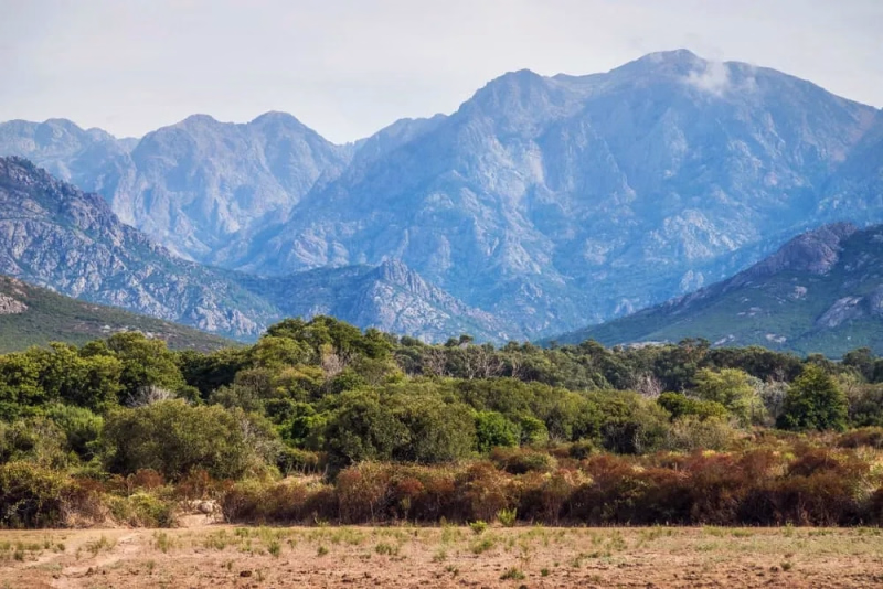 Après un début encaissé, le sentier rejoint le ruisseau de Lamitu, dont le murmure accompagne la progression sur une portion ombragée. Plus haut, les piscines naturelles du ruisseau de Melaghia invitent à la pause, avec leurs vasques claires coincées entre les rochers. La montée devient ensuite plus soutenue, serpentant dans la forêt de pins Laricio, dont les troncs droits et la lumière filtrée donnent une atmosphère presque aérienne.