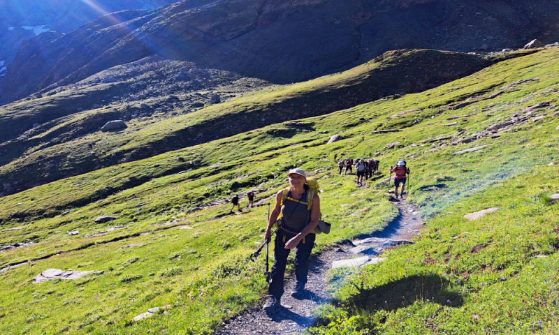 Depuis le cirque glaciaire du Gioberney, l’itinéraire prend de l’altitude vers le refuge de Vallonpierre. L’ambiance devient plus alpine et minérale, avec un dénivelé marqué, adouci par le passage dans plusieurs hameaux typiques du Valgaudemar, aux maisons de pierre aux toits de lauze. La montée offre de belles opportunités d’observation : chamois, lys martagon et lys orangés accompagnent souvent les randonneurs. L’étape se termine dans un cadre apaisant, au bord d’un lac d’altitude qui borde le refuge, offrant une pause bienvenue face aux sommets.