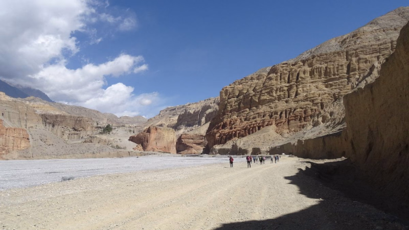 Aujourd'hui, nous mettrons le cap sur Yara, en empruntant des sentiers peu connus qui serpentent le long du flanc est de la Kali Gandaki. Ce chemin, bien que difficile, vous plongera au cœur des vallées reculées du royaume de Lo, vous offrant une immersion authentique dans la beauté sauvage de cette région. Au fil de notre marche, vous serez émerveillé par les paysages spectaculaires qui se dévoilent autour de vous. Les montagnes majestueuses, les formations rocheuses uniques et la tranquillité ambiante vous transporteront dans un monde à part. Finalement, nous descendrons vers le village de Yara, où le temps semble s'être arrêté. Avec environ 6 heures de marche, cette journée sera une véritable aventure, vous laissant des souvenirs inoubliables et un profond lien avec cette terre fascinante.
