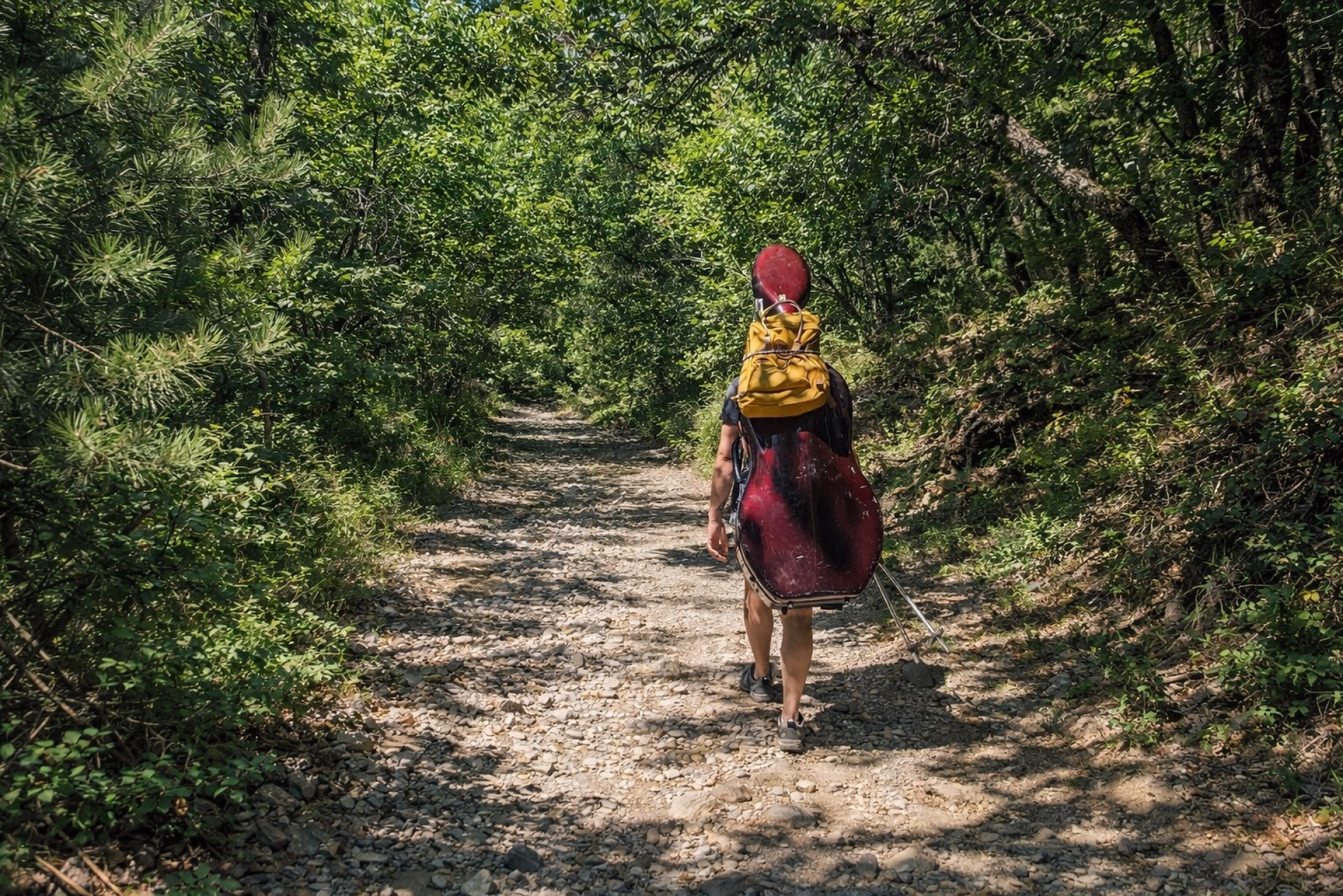 Le chemin prends de la hauteur au-dessus du village de Montmaur, dans la forêt, avant de remonter le Rif de l’Arc jusqu’aux gîtes de Matacharre où la première session musicale aura lieu.