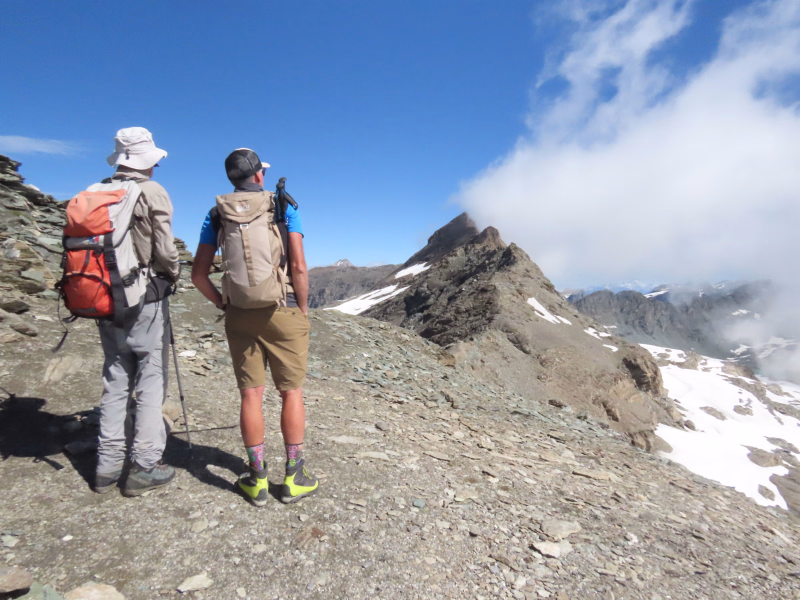 Vous débutez votre journée au Pont des Neiges, au cœur d’un environnement minéral typique de la haute montagne. La montée vers le Col des Fours (3072m) se fait progressivement sur un sentier d’altitude offrant des panoramas dégagés sur les glaciers et les sommets environnants. L’itinéraire alterne entre passages rocailleux et sections plus roulantes, dans une ambiance sauvage.