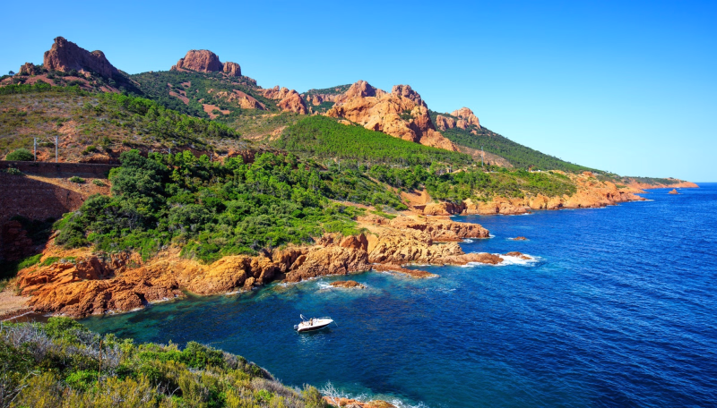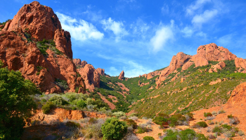 Entre mer turquoise, roches rouges et collines verdoyantes, ce séjour invite à découvrir une Côte d’Azur plus sauvage et préservée. Loin de l’effervescence du littoral, le massif de l’Esterel dévoile des paysages spectaculaires où le porphyre rouge contraste intensément avec le bleu profond de la Méditerranée. Les sentiers serpentent sur des crêtes escarpées, dominant des cri ques secrètes aux eaux limpides le long de la Corniche d’Or, offrant une ambiance unique entre mer et montagne.