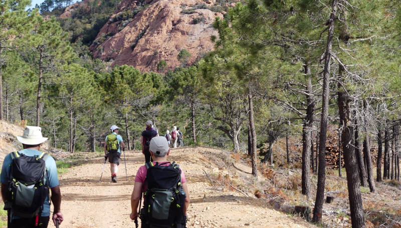 Court transfert en train au Trayas (20min). Nous montons au Pic de l’Ours (492m) qui offre une vue imprenable sur la baie de Cannes, les îles de Lérins, la baie de Fréjus et le massif des Maures. Des sommets dentelés, des falaises rouges, des ravins vous ravissent les yeux… La végétation méditerranéenne est diversifiée : chêne-liège, pin maritime, bruyère, arbousiers… Nous descendons par la dent de l'ours pour rejoindre la gare par de jolis sentiers qui surplombent la mer. Retour à Saint Raphael en train (20min).