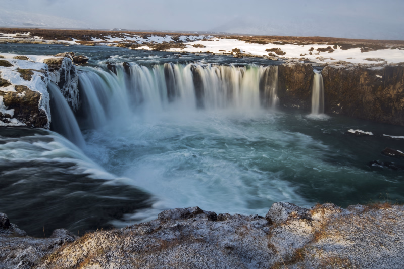 La route se poursuit jusqu’à Akureyri, charmante capitale du Nord, puis vers les paysages volcaniques de Mývatn. En fin de journée, arrêt aux célèbres chutes de Goðafoss, dont le nom évoque les anciens dieux nordiques.