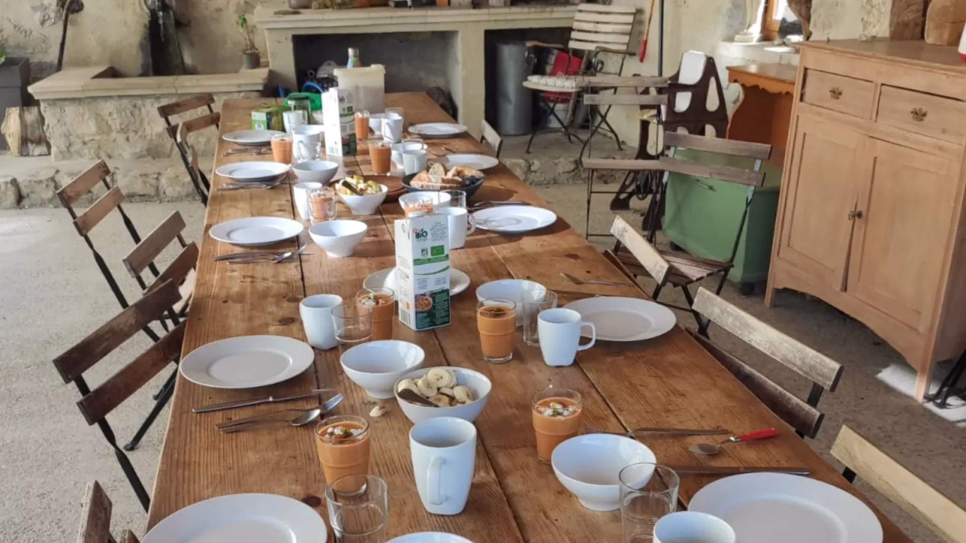 Nos repas sont préparés avec des aliments locaux et de saison, mettant en valeur les richesses culinaires de notre région et soutenant les acteurs locaux. Nous dégusterons aussi ce que nous aurons préparé afin de nourrir nos corps de manière saine et équilibrée.