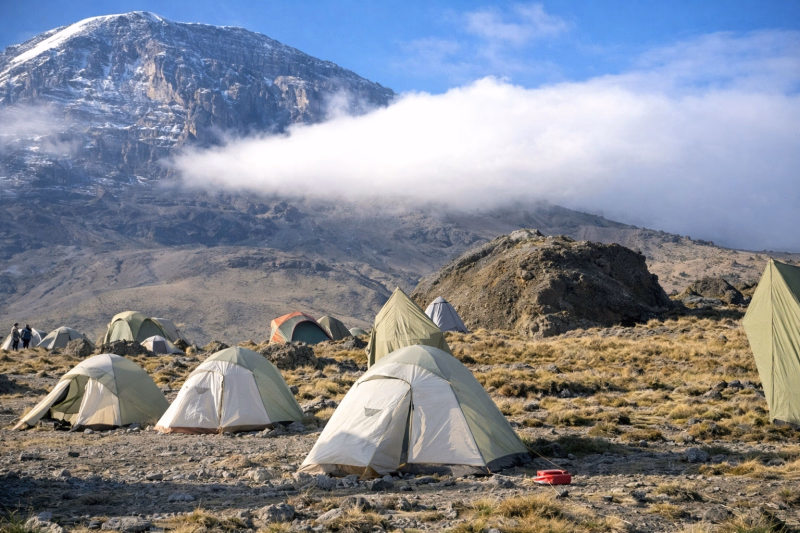 La marche est régulière mais plus exigeante en raison de l’altitude. Votre guide adapte l’allure pour favoriser l’acclimatation et limiter la fatigue. Une fois arrivé à Kibo Hut, vous prenez un repas léger et vous reposez en prévision de l’ascension du sommet pendant la nuit.