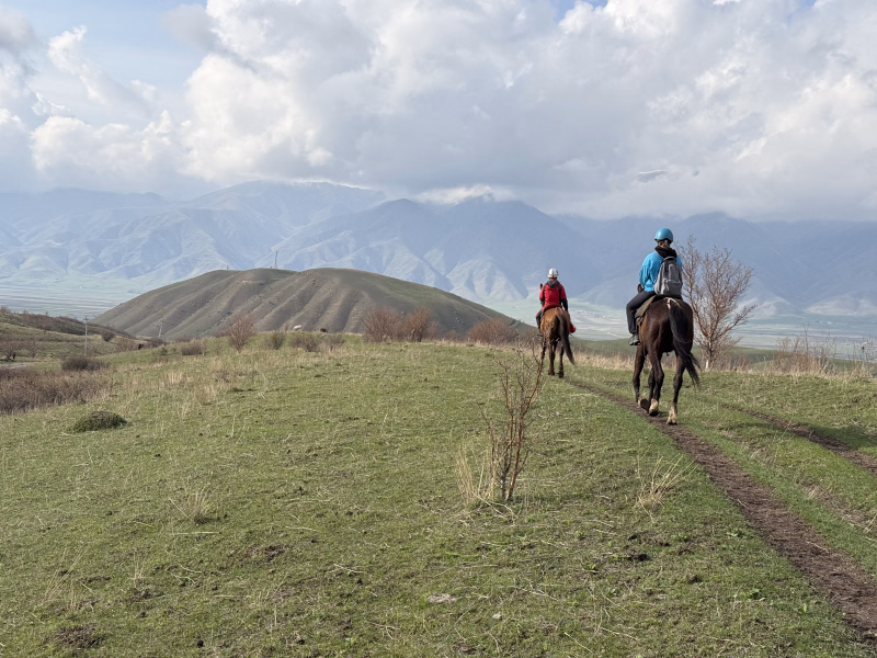 - Nous arrivons dans la verdoyante vallée de Chon-Kemin, réserve naturelle offrant une diversité de paysages conciliant semi-désert, glaciers et gorge. Pour ceux qui le souhaitent, nous pouvons découvrir la beauté de ces lieux à cheval depuis la maison de notre hôte, où nous passerons la nuit.