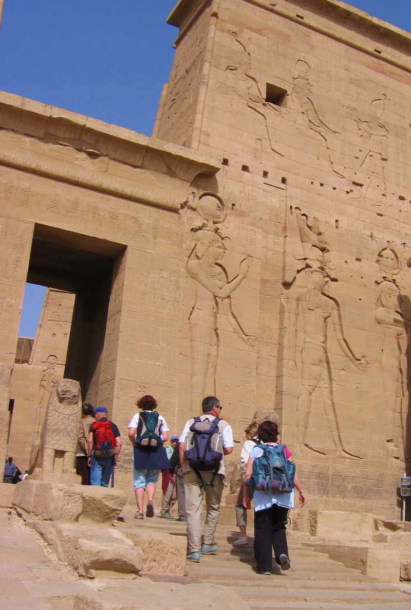 En début de matinée, randonnée entre le Nil et le désert tout proche, nous rejoignons ensuite le fleuve pour naviguer jusqu'à Assouan. Déjeuner à bord puis visite du temple d'Isis à Philae. Ce temple est un des temples sauvés des eaux du haut barrage d'Assouan. Un petit tour au souk plus tard, nous revoilà pour dîner sur notre bateau. Nuit à bord.