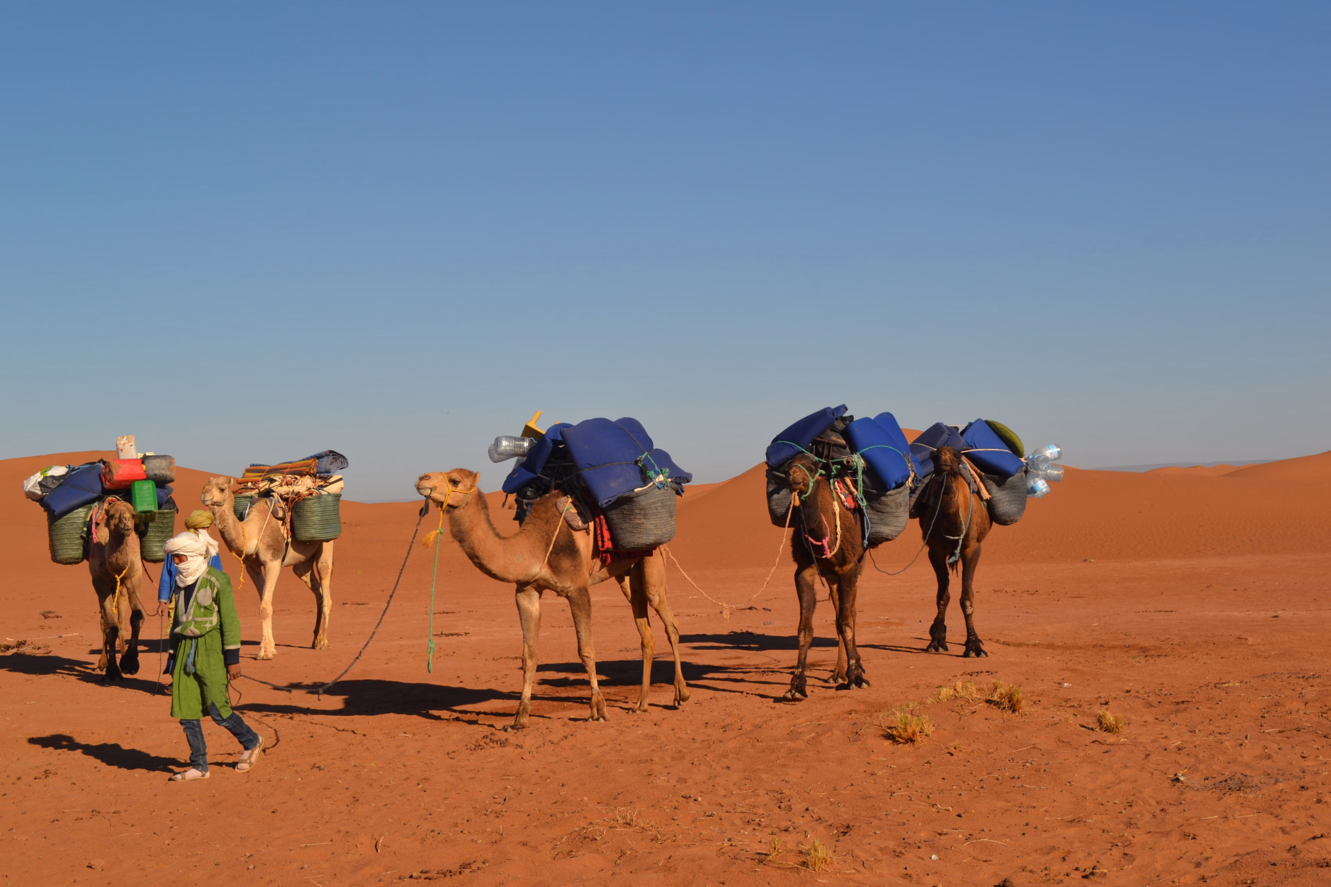 Ce voyage de 8 jours avec 5 nuits sous tente propose une immersion totale dans le désert de la vallée du Drâa, à travers 4 randonnées itinérantes accessibles, pensées pour se ressourcer et renouer avec l’essentiel. Accompagné d’une caravane chamelière, le trek se déroule au rythme lent et apaisant du Sahara, en compagnie de chameliers semi-nomades, gardiens d’un mode de vie ancestral.