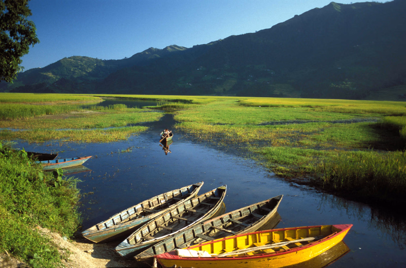 Descente vers Birethanti (1100 m) pour rejoindre la route, puis transfert en bus jusqu'à Pokhara. Fin de journée libre pour flâner tranquillement le long de l'artère commerçante de "Lake View", où sur les rives paisibles du lac de Phewa.Jour 8 -
