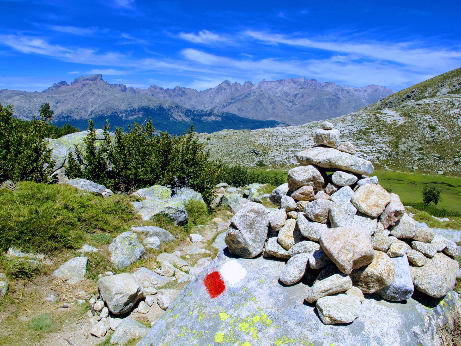Partez pour une immersion sportive et sauvage sur l’un des plus beaux sentiers d’Europe : le GR20 nord, entre montagnes escarpées, forêts de pins laricio et bergeries traditionnelles. Depuis Ascu Stagnu, vous progressez au cœur d’une nature brute, jusqu’à la Pointe des Éboulis (2 604 m), offrant une vue imprenable sur le Monte Cinto, point culminant de l’île. La traversée vous mène ensuite à travers le Niolu, l’un des territoires les plus préservés de Corse, entre ravins minéraux, lacs glaciaires et prairies d’altitude.