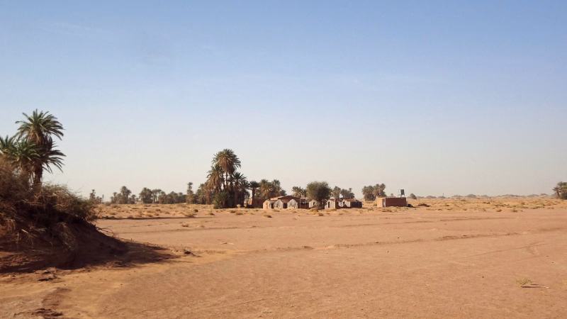 A la sortie du dernier village de Mhamid El ghizlane, nous débutons une Randonnée a pied dans le désert, traversant le fleuve de Daraa -le plus long fleuve du Maroc et principale source de vie nomade longue de 1100km- en passant par l'oasis de palmiers qui commence lentement à disparaître. annonçant ainsi la porte du désert, le déjeuner aura lieu à Rass Nkhal - la fin de l'oasis de palmiers - dans l'après midi après avoir été reposés et détendus nous continuons à suivre les pas des dromadaires vers un lieu saint appelé Sidi Naji un marabout qui jouait et joue encore un rôle important participer à la vie spirituelle des Nomades. Une fois arrivés, vous pourrez voir et vous promener autour de ce marabout et en savoir plus. Le dîner sera à vue.